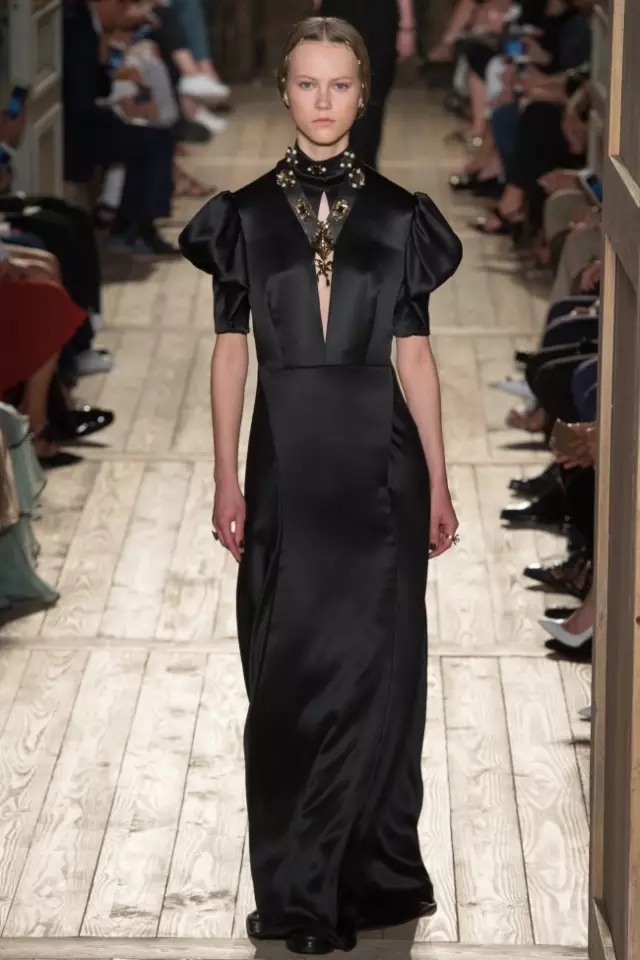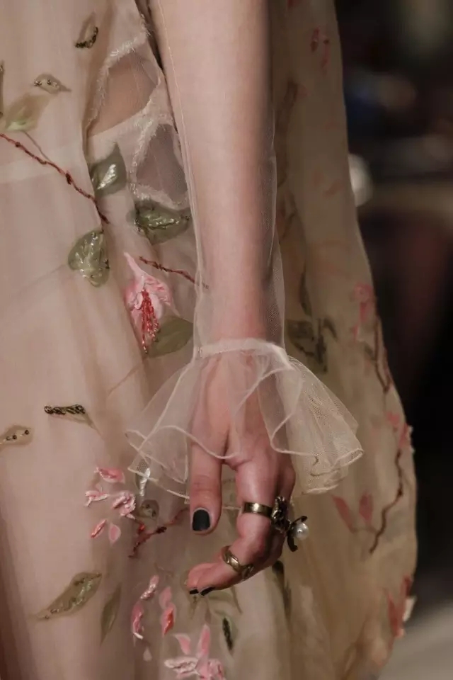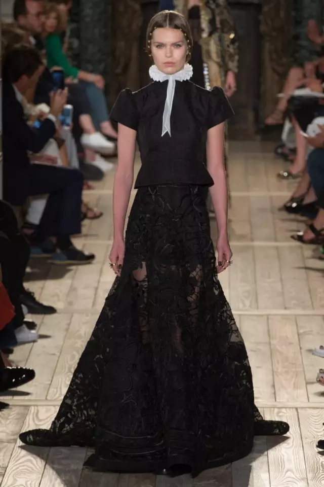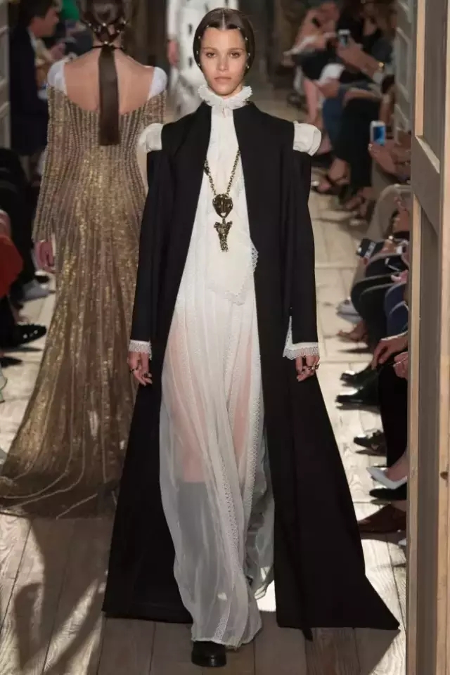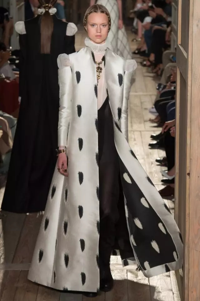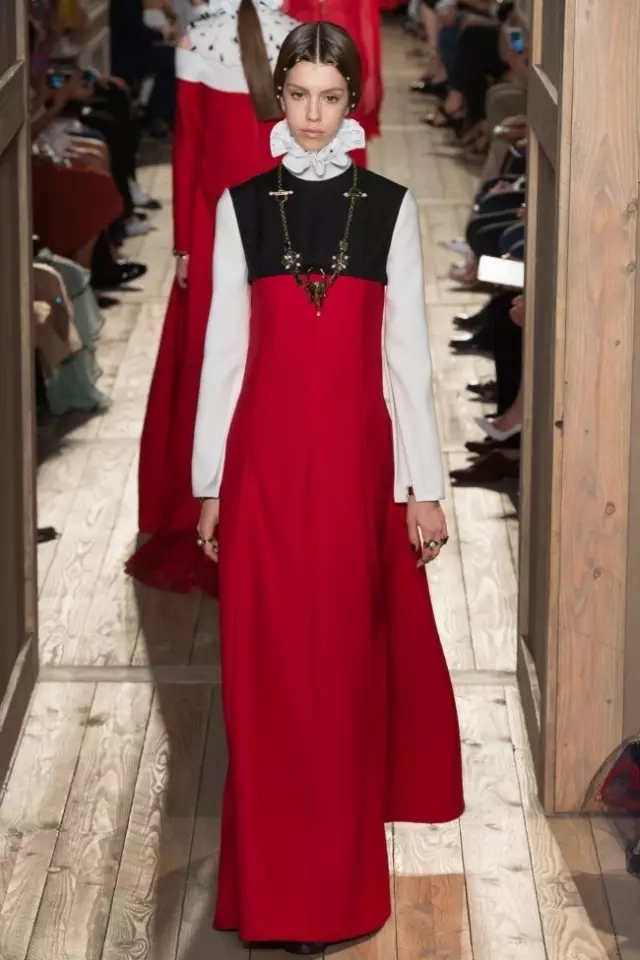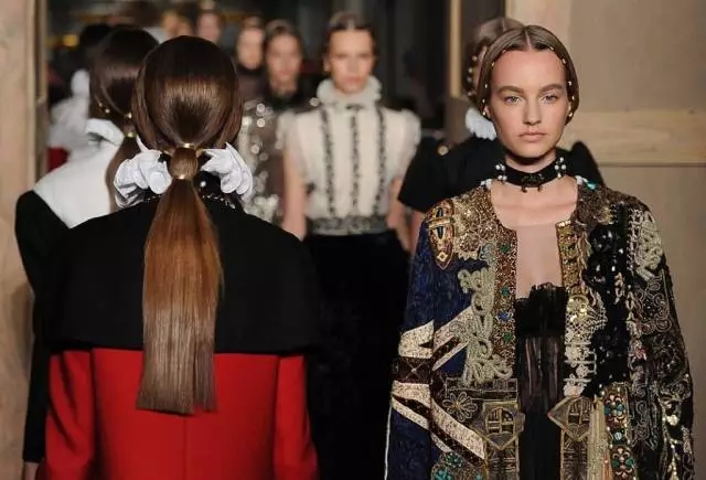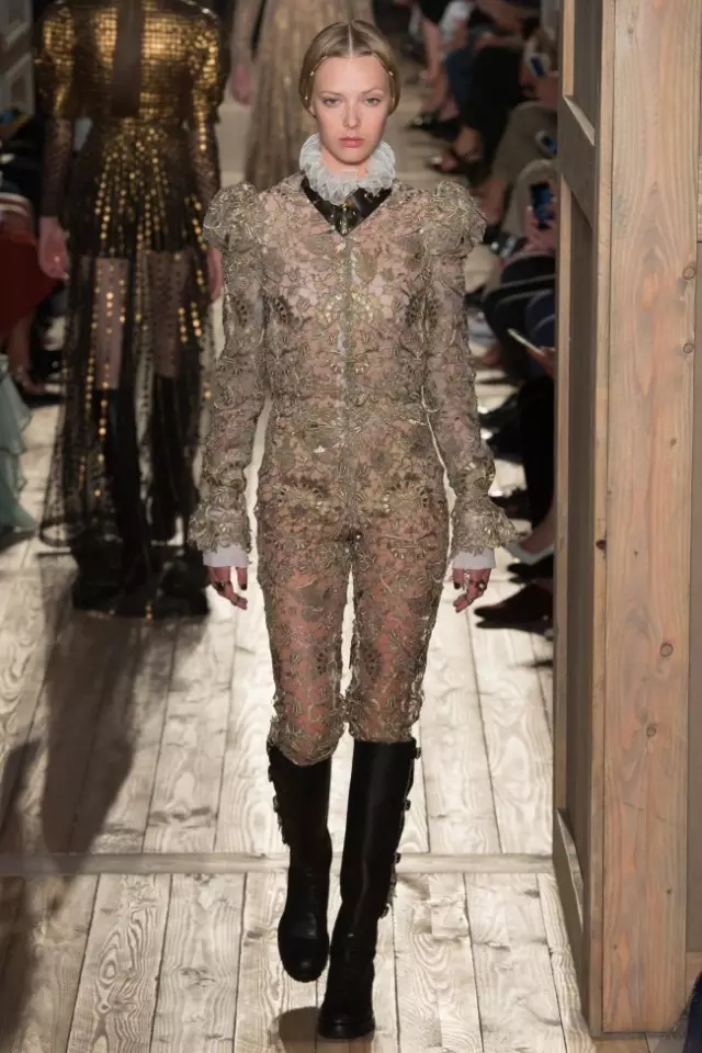 仙女系的Valentino,这次有些回到地球的感觉,但却也不是地球上的凡人,而是女王,一切就像是吟游诗人的戏剧,文艺复兴时期意大利的《罗密欧与茱丽叶》、《威尼斯商人》、《维洛那二绅士》……,Valentino 2016秋冬的高级定制服,从大文豪莎士比亚的剧作汲取灵感,模特儿身上那一套套华服,就像是为这些浪漫的剧本而打造的。
