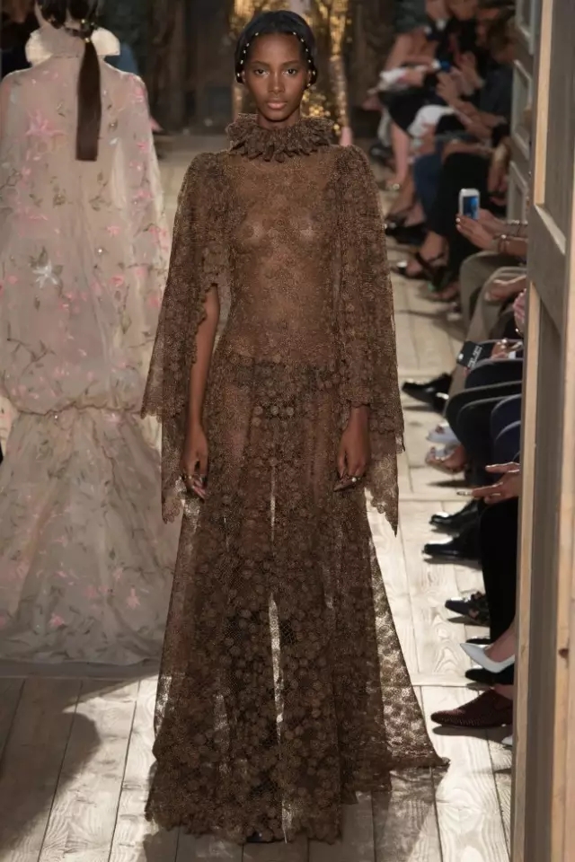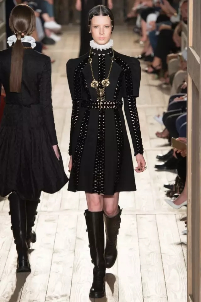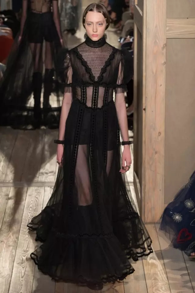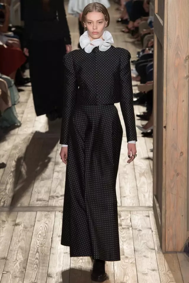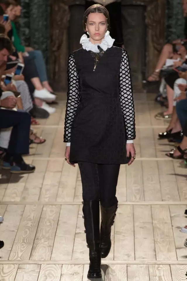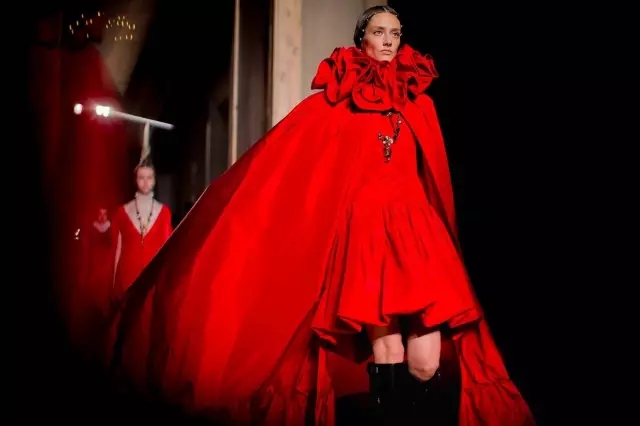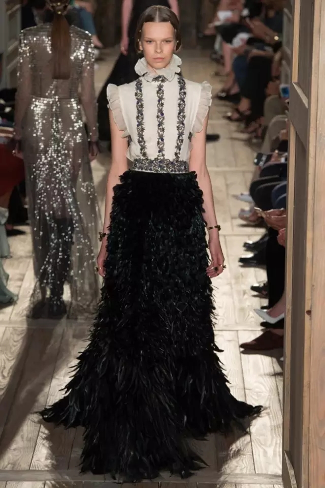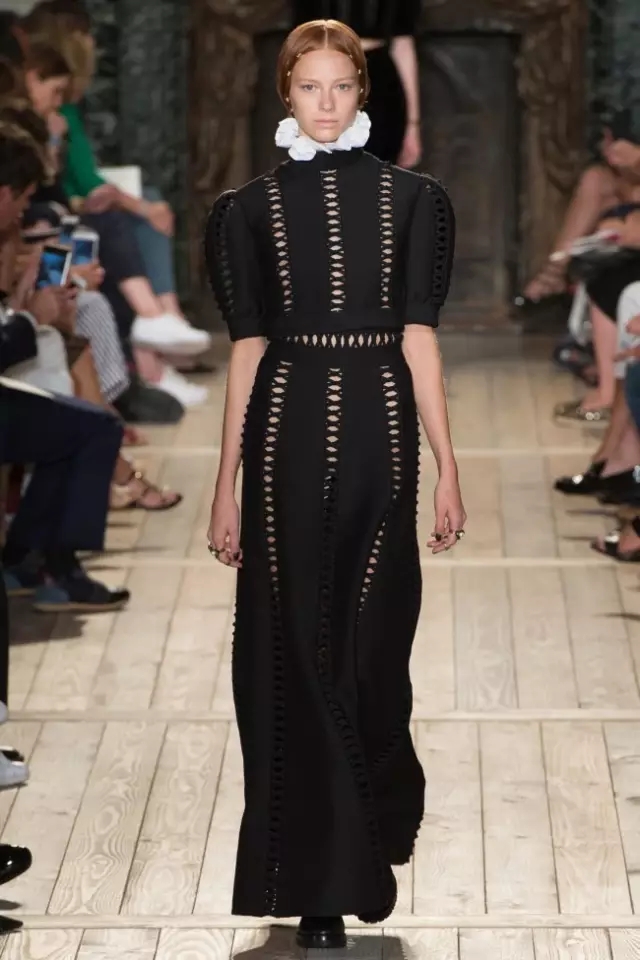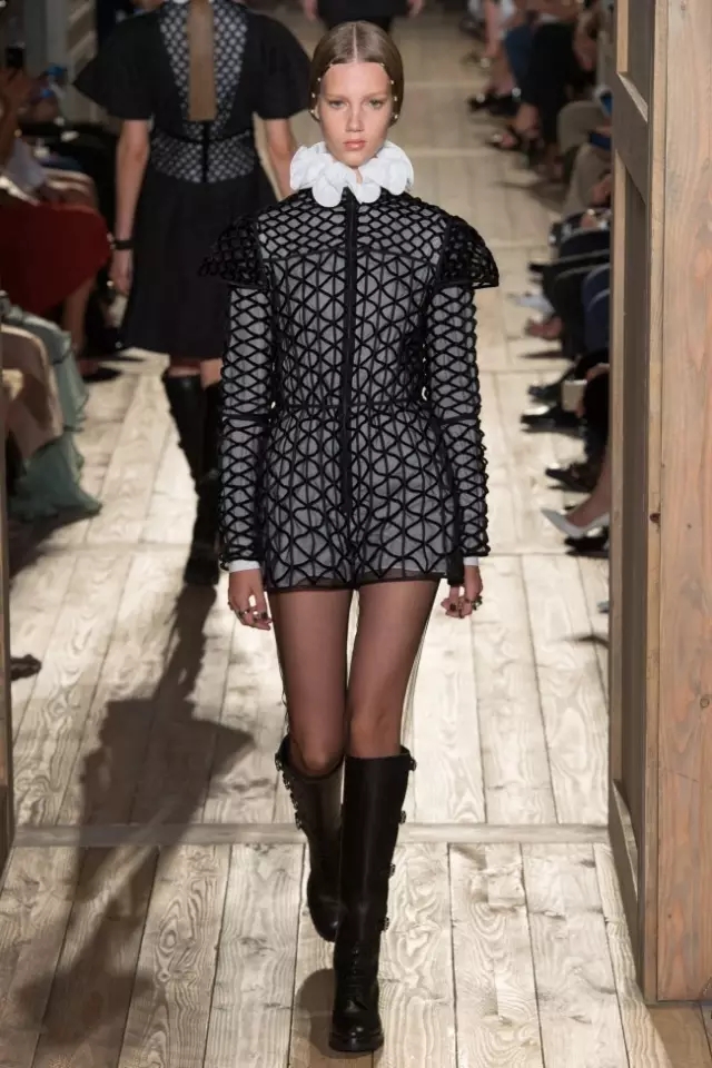 仙女系的Valentino,这次有些回到地球的感觉,但却也不是地球上的凡人,而是女王,一切就像是吟游诗人的戏剧,文艺复兴时期意大利的《罗密欧与茱丽叶》、《威尼斯商人》、《维洛那二绅士》……,Valentino 2016秋冬的高级定制服,从大文豪莎士比亚的剧作汲取灵感,模特儿身上那一套套华服,就像是为这些浪漫的剧本而打造的。