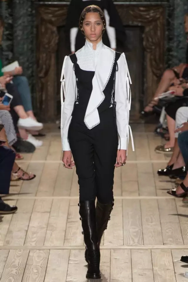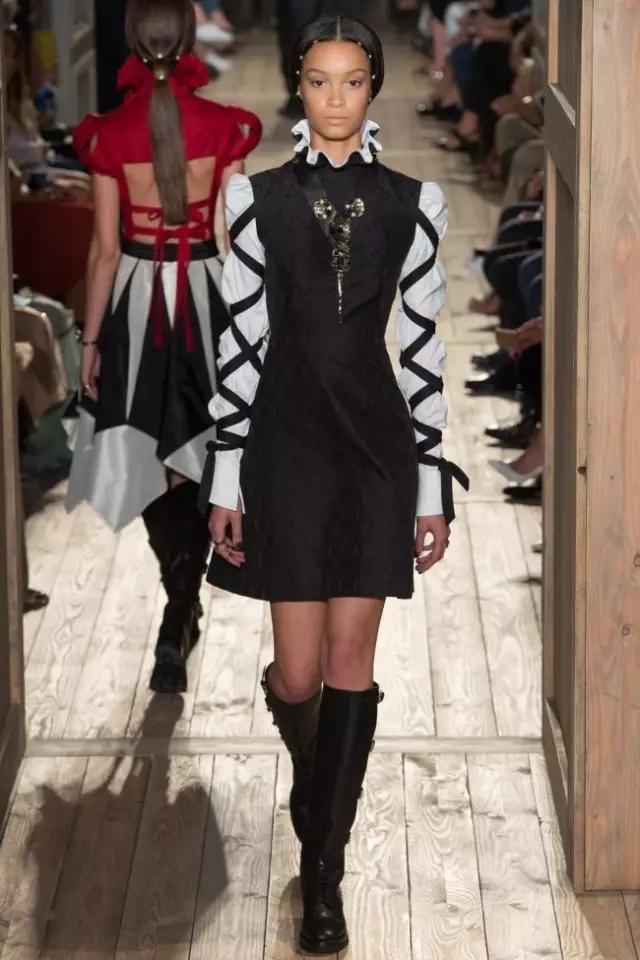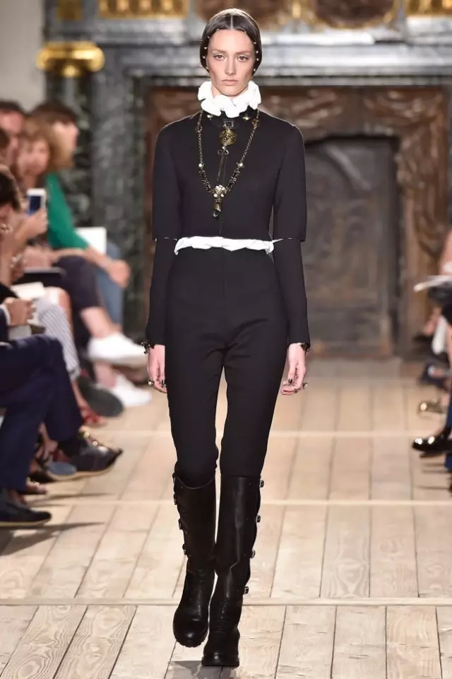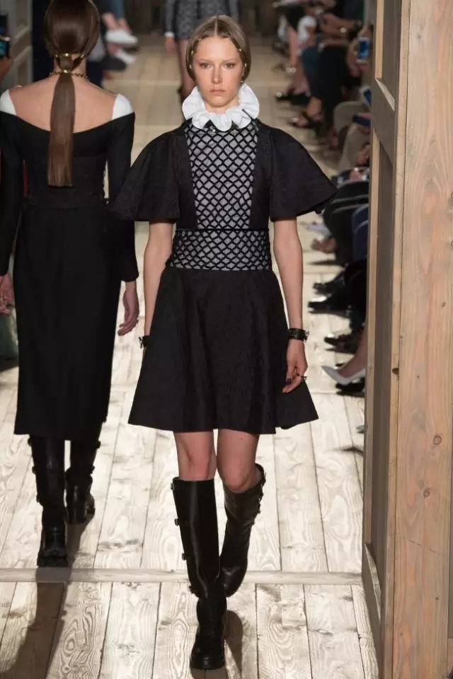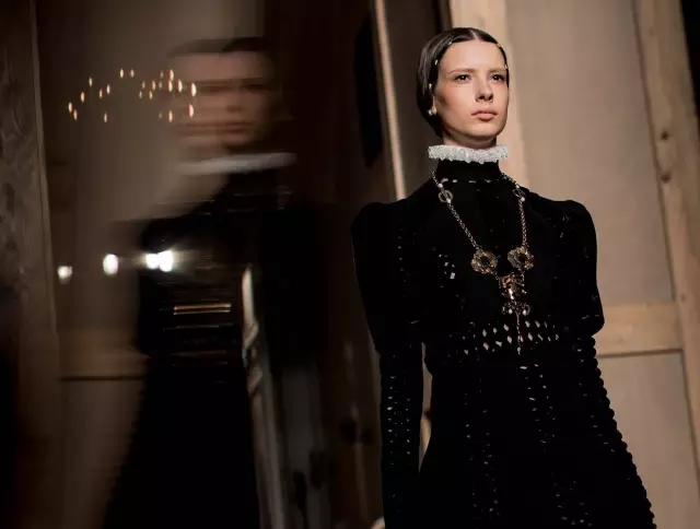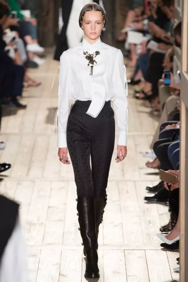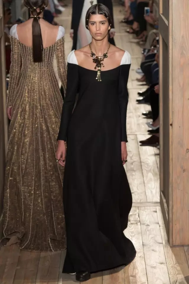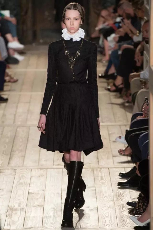 仙女系的Valentino,这次有些回到地球的感觉,但却也不是地球上的凡人,而是女王,一切就像是吟游诗人的戏剧,文艺复兴时期意大利的《罗密欧与茱丽叶》、《威尼斯商人》、《维洛那二绅士》……,Valentino 2016秋冬的高级定制服,从大文豪莎士比亚的剧作汲取灵感,模特儿身上那一套套华服,就像是为这些浪漫的剧本而打造的。