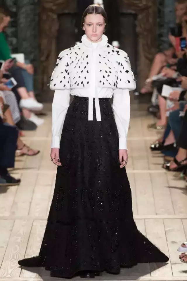 黑白配色 这一季 Valentino 使用了大量的黑白配色,相较仙女系的梦幻,更多了份实用感,但这些黑白配色也并非摩登的路线,它们朴实而华丽,低调而大气,时而简约的轮廓,又时而充满精致的细节。