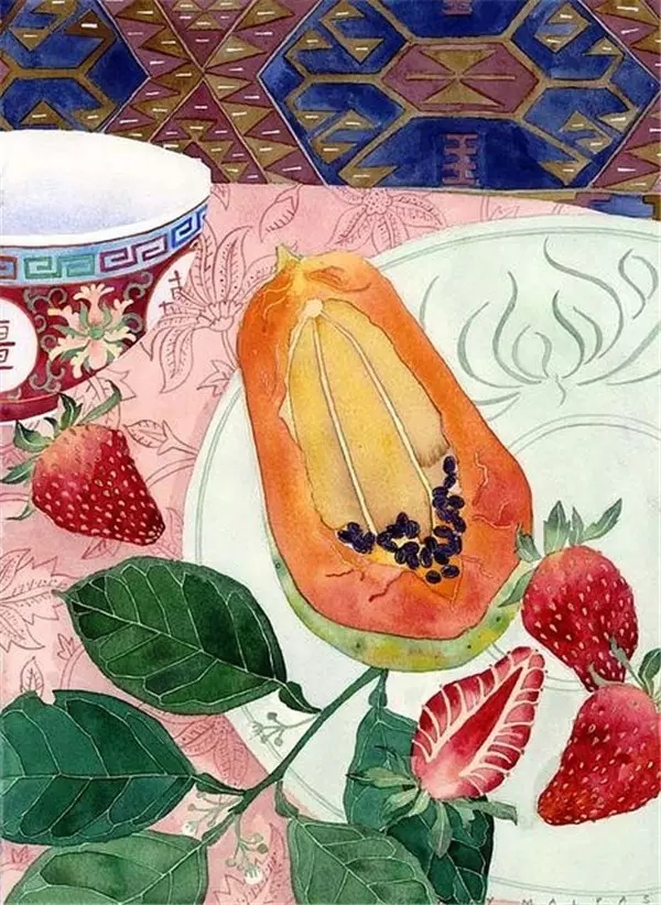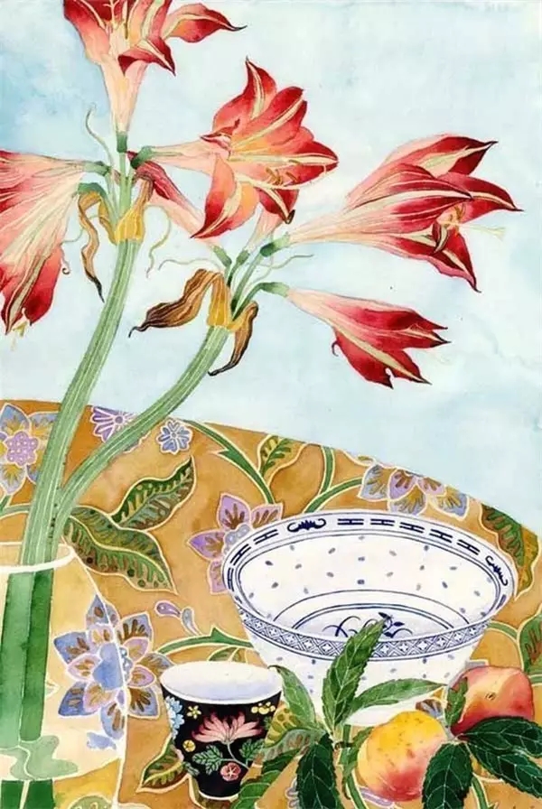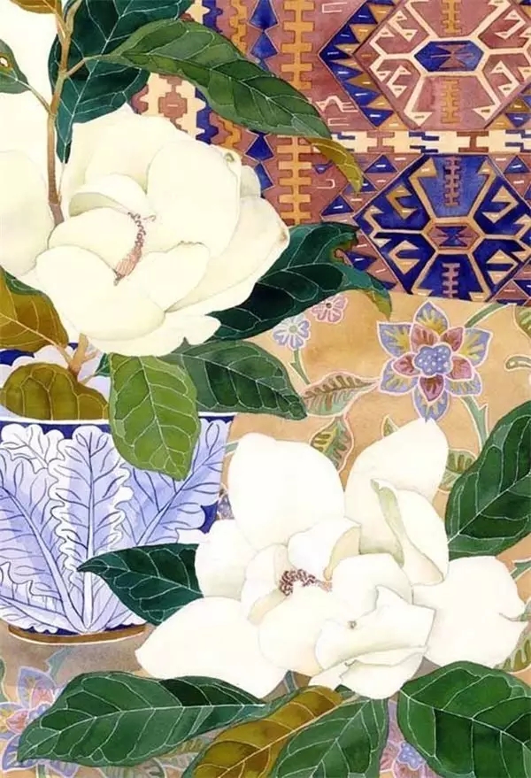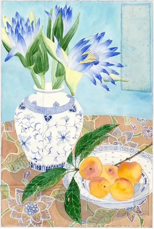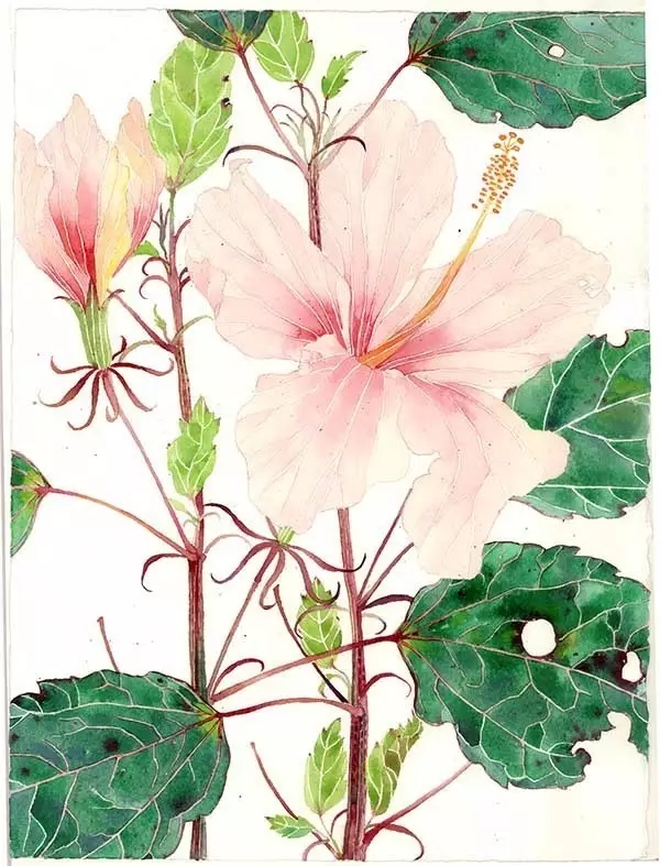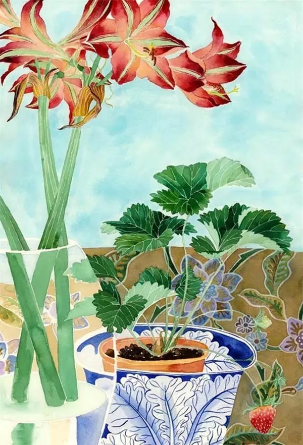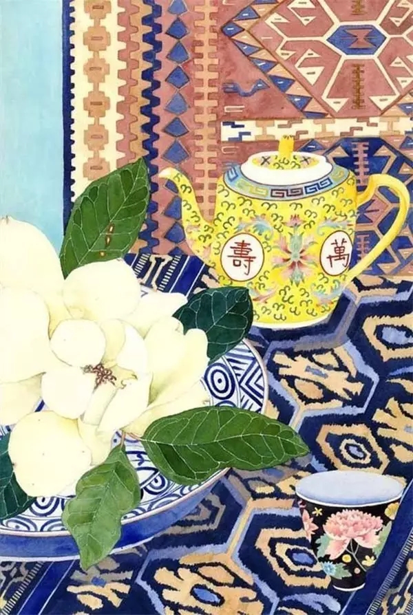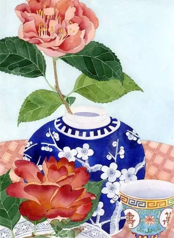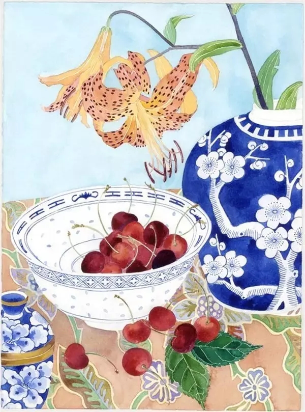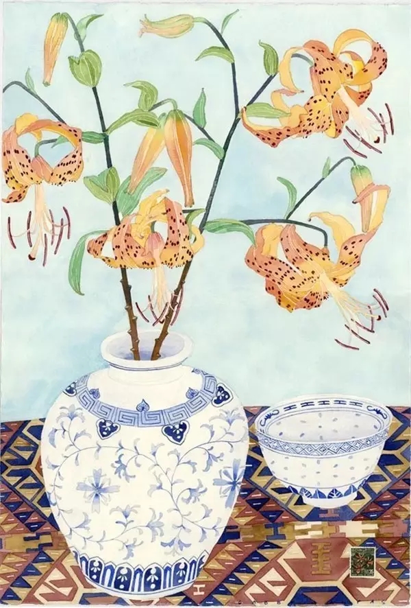 来自新西兰的艺术家Mango Frooty本是陶瓷专业出身,但一直对水彩画有着浓厚的兴趣,她将自然中的植物花卉,从叶脉枝桠,到花蕊根茎,都描绘得丝丝入扣,或清新淡雅,或浓烈热情,再和周边富有中国特色的花瓶瓷器相搭配,竟然营造出我们所熟悉的中国味道,清丽雅致。