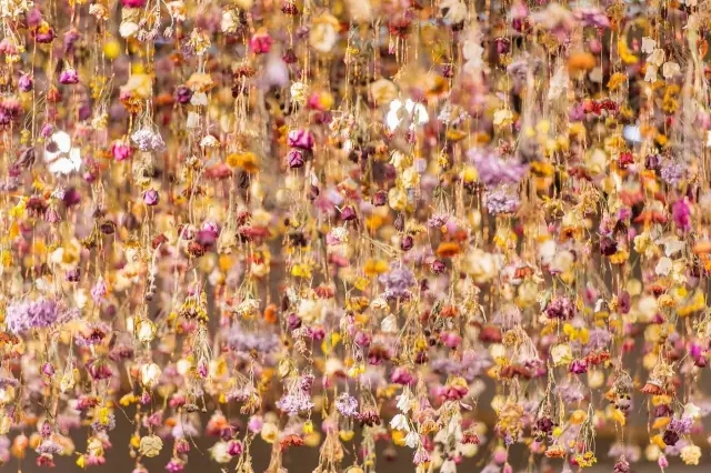 英国艺术家Rebecca Louise Law以大型植物装置作品闻名,她常用鲜花、干花和铜线进行创作,作品自然而然随着时间发生变化,观者在展出过程中也见证着这一过程。“我从植物的纹理或它们生长的方式获取灵感,所以我的大多数作品都反映着自然界。”Law说。