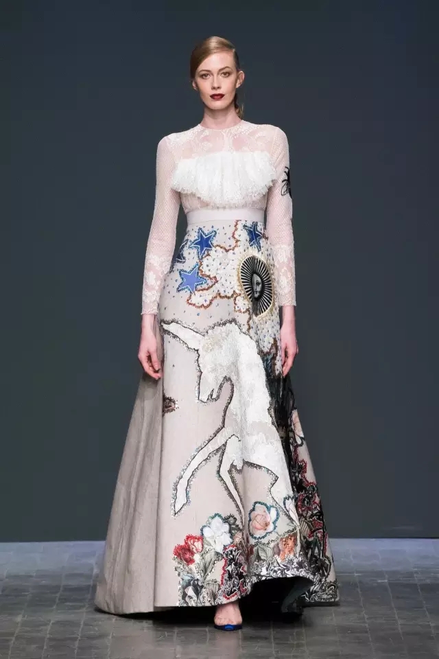 出生于1990年的黎巴嫩设计师Hussein Bazaza曾为Elie Saab设计过不少杰出的作品,他自己的设计也是华丽与典雅并存,Hussein Bazaza品牌用多样的、精致的、大胆的而又现代时尚的方式重新诠释刺绣的美。