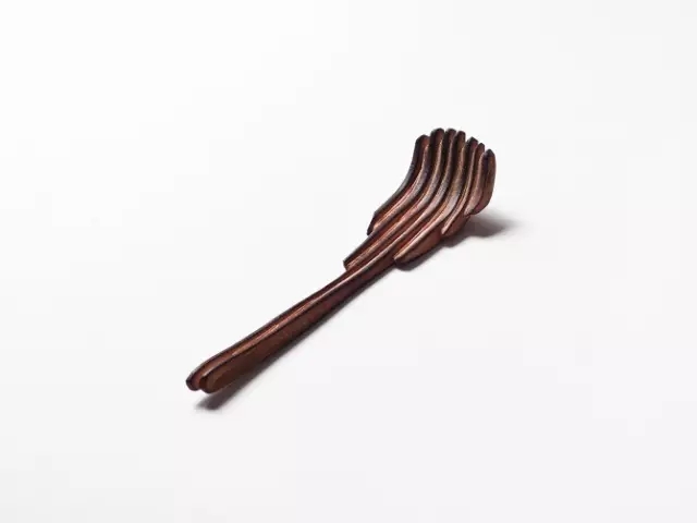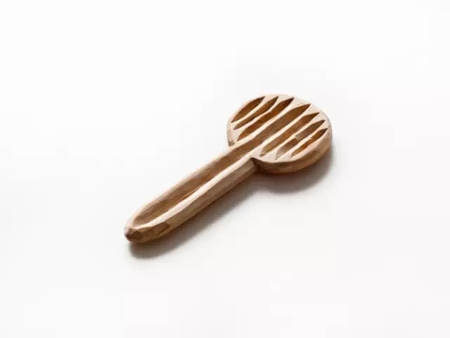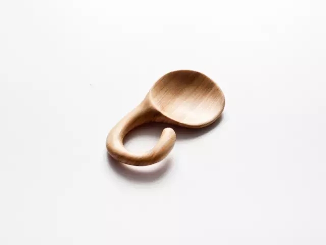 Stian在制作过程中不使用机器,而是使用传统的手工雕塑工具,按照不同的木材的结构和自然生长来创作符合它们本身“气质”的勺子。所以每一个勺子都有着不同的功能和性格。