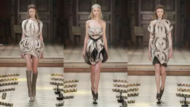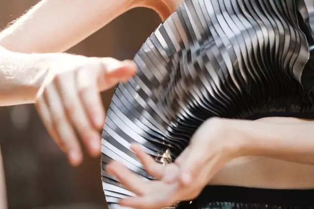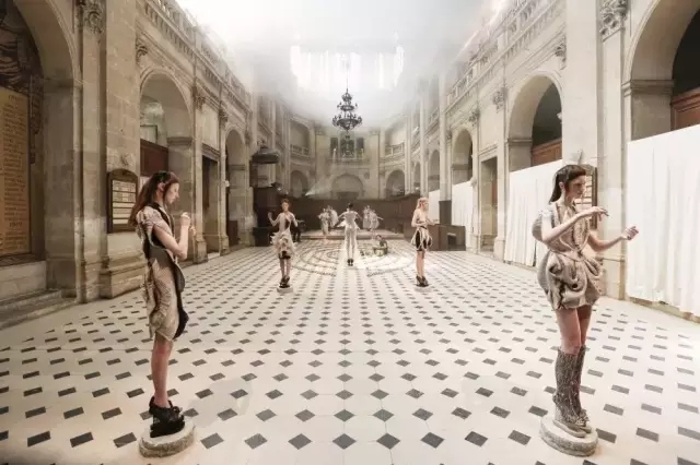 Iris Van Herpen 让声音看得见 “叮——叮——“,一座大教堂里,呈圈状排开的金属钵装置散发出空灵的声响,这里的人好像动作慢了半拍。小编怀疑自己误入了某个可以让时间减速的神秘空间。