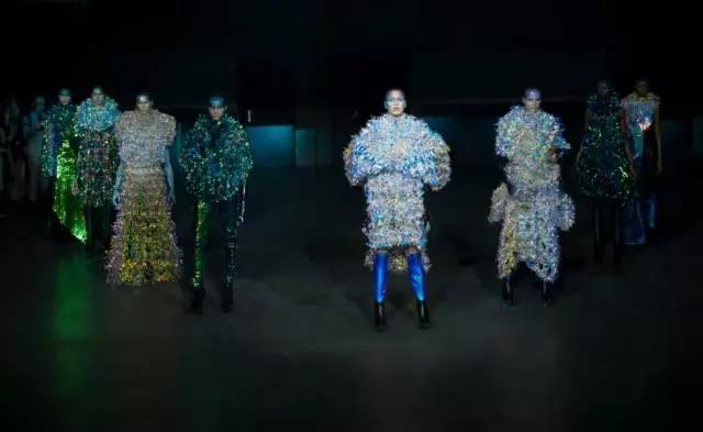 在一片黑暗之中散发幽幽的光芒,科技的运用让服饰大有不同,不得不佩服设计师强大的创造力。