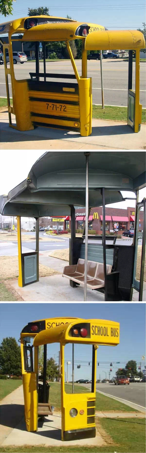 而位于亚特兰大的这个公交站是由雕塑家Christopher Fennell回收的3个旧校车组成。