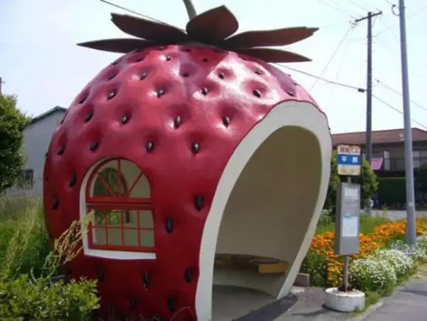 在日本长崎有一系列的水果巴士站,你沿途会发现形状如草莓、甜瓜、西瓜、橘子和西红柿,据说设计师的灵感来自灰姑娘的故事!