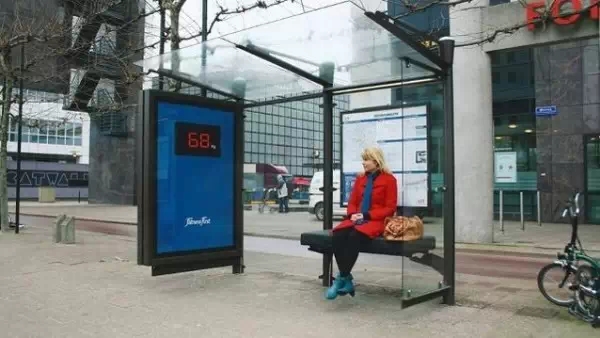 阿姆斯特丹略带争议的公交站,当你坐下,一旁的显示屏就会暴露你的体重,是坐下还是站着好呢?