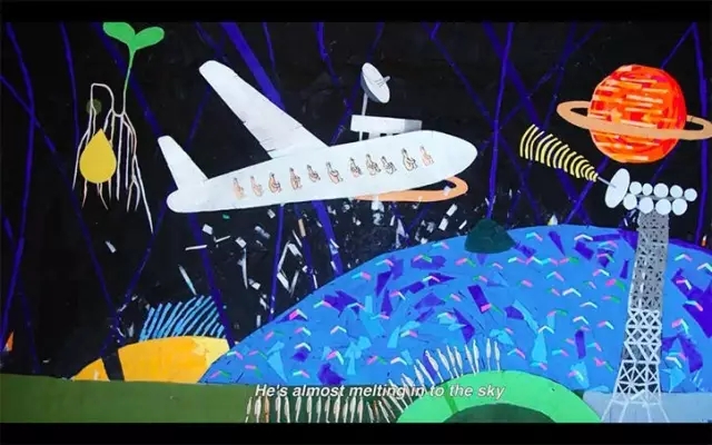 这支动画MV花了5个月制作,尤其是用视觉语言去呈现歌词中塑造的怪诞自然,而歌词中语言既涵盖了怪异可爱的“Pedalling a bicycle。Fluffy,fluffy… to anywhere” ,又包含了古怪的 “He’s melting into the sky,flabby flabby… sayonara。”这些生动的橘子与动画设计师Hoji天真烂漫的画面无缝接配合。