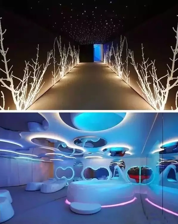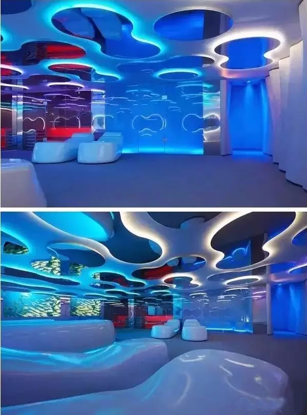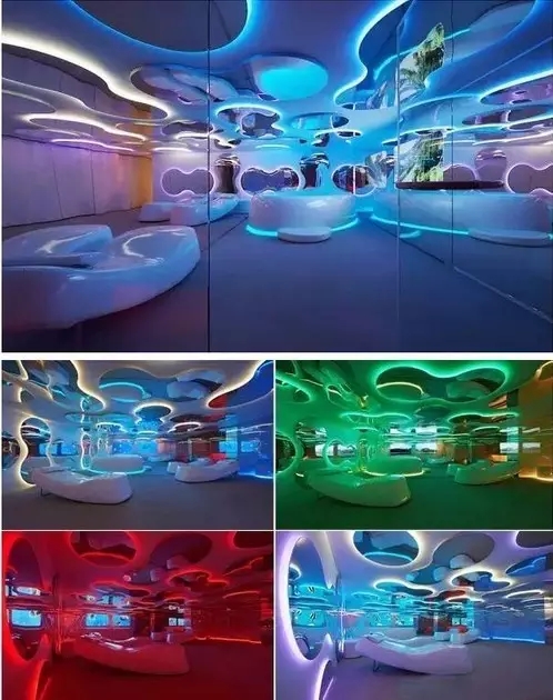 被誉为“Architectural Hero”的意大利建筑师Simone Micheli,以健康为理念设计了一个沉浸式感官体验的温泉会馆。里面流线型的家具和装饰设计,使人放松,灯光变换带来的色彩沉浸,好像置身于一个巨型水族箱,完全沉浸在一个迷人的水上世界。
