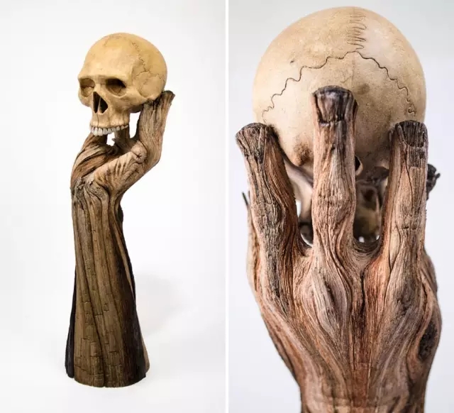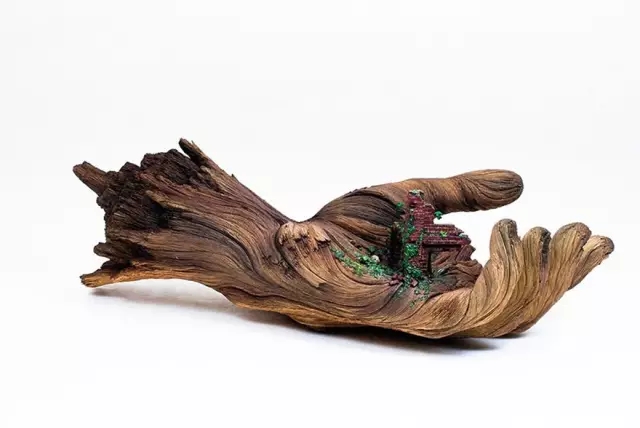 Christopher的手工雕塑围绕主题“腐朽”展开,腐败的木头、生锈的金属或其它任何正经历衰败的事物都是他塑造的对象。“变化一直提醒着我们永恒只是幻想,”他说,“我希望通过创作这些超现实主义雕塑来探讨自然、人类以及无常之间的关系。自然物与人造物的并列共存,加之尺寸、比例、材质的变幻,让观者不自觉的深入观察起来。”