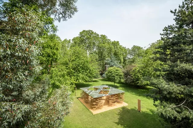 凯旋亭装置是今年伦敦建筑节的一个年度展览,旨在鼓励建筑方面的实验和研究。伦敦本土工作室five line设计了一个动态且鼓励公众参与的结构,位于贝斯纳尔格林的伦敦博物馆花园里,毗邻V&A儿童博物馆。设计从今年的主题“能量(energy)”获得灵感。