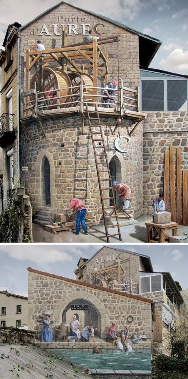 由于壁画实在太真实,很多路人都经常迷惑停下脚步