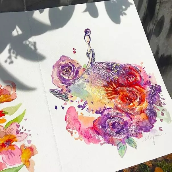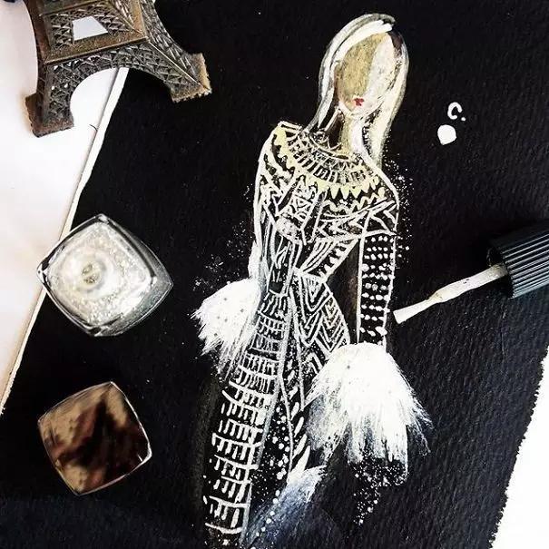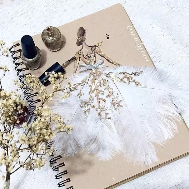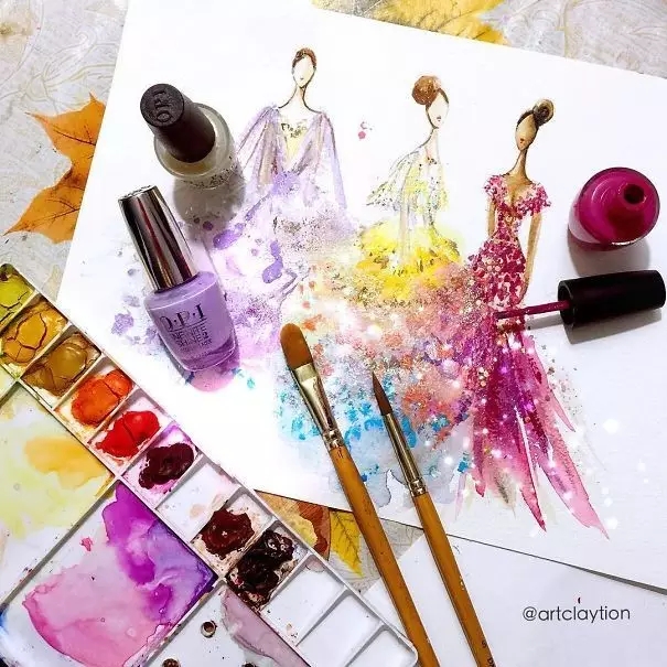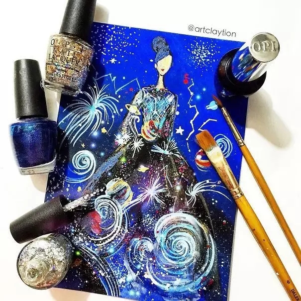 来自新加坡的艺术家 Chan Clayrene就用手里的指甲油绘制出一件件美到爆的高定礼服,Chan Clayrene喜欢漂亮华丽的衣服,除了喜欢欣赏外,更喜欢用指甲油这种特殊的材料来作画,在她的Ins上可以看到更多的美轮美奂作品。