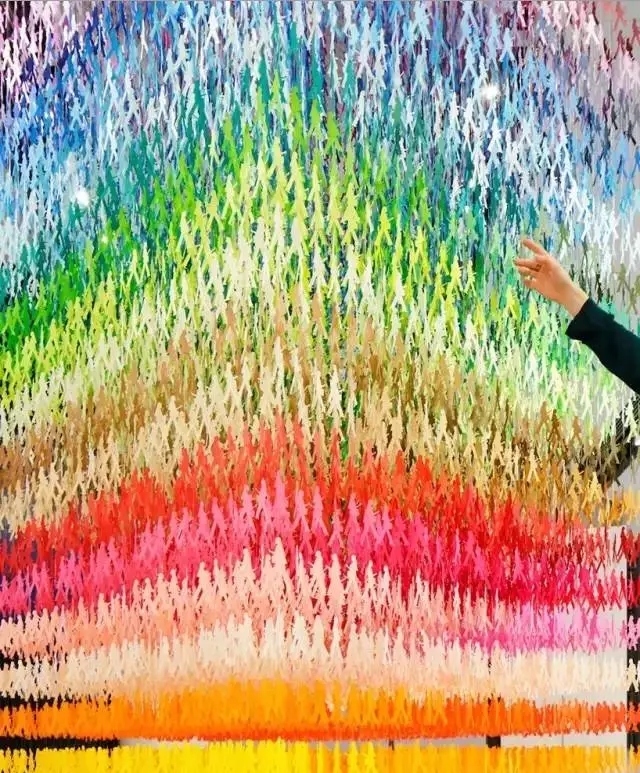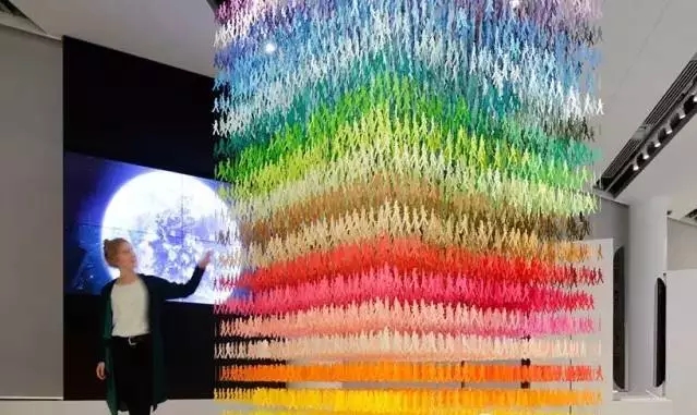 moureaux的作品名为“I am here(我在这里)”,它由18000张剪纸构成,共有100种不同的颜色,表现的是日本繁忙地段川流不息的人群。其中有两个女孩和一只猫,他们隐藏在多层的纸人里,艺术家鼓励游客们从作品中将他们找出来,就像是在人群中寻找“走失”的身影一样,该装置提醒我们重新去思考我们究竟属于哪里。
