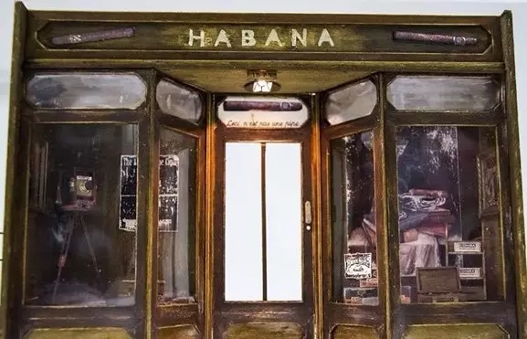 ▲复古老店的窗櫺与门面,木头上岁月带来的斑驳磨损感,展示窗里细腻的袖珍商品与老旧相机。