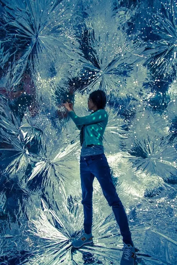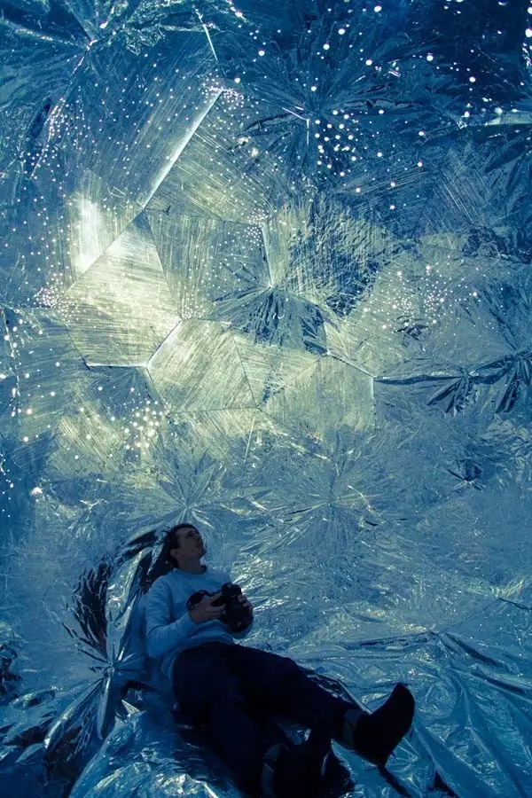 在改造完成的无限镜像空间内,参观者能够非常放松,凝视使用激光束变幻的人造星星,也可以在薄膜层之间放肆弹跳。OSMO这个装置,把一个尴尬的公共空间完全改变成一个奇妙和宁静的体验场所。