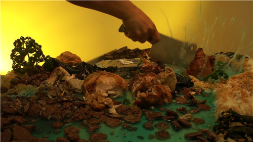 宋冬  作品简介:煞风景(斧劈皴)A Blot on the Landscape - Chop Stroke,2010Video 录像running time:3minutes 21seconds。