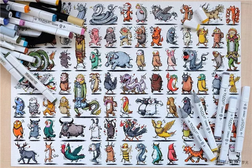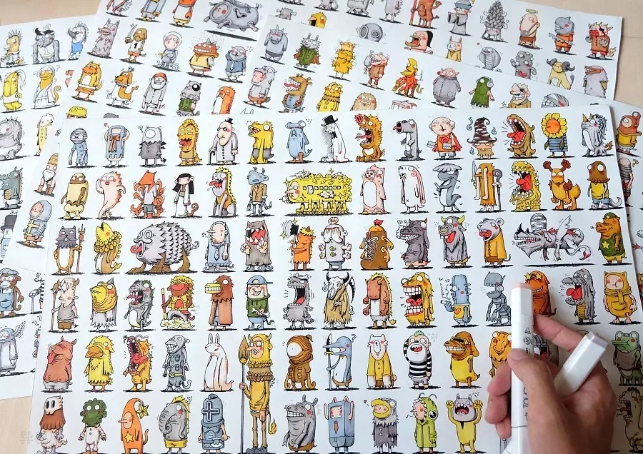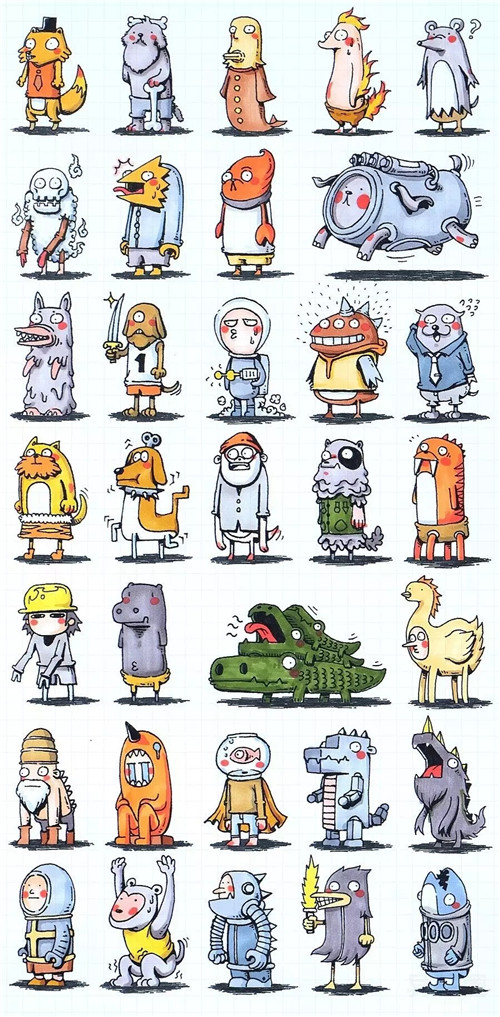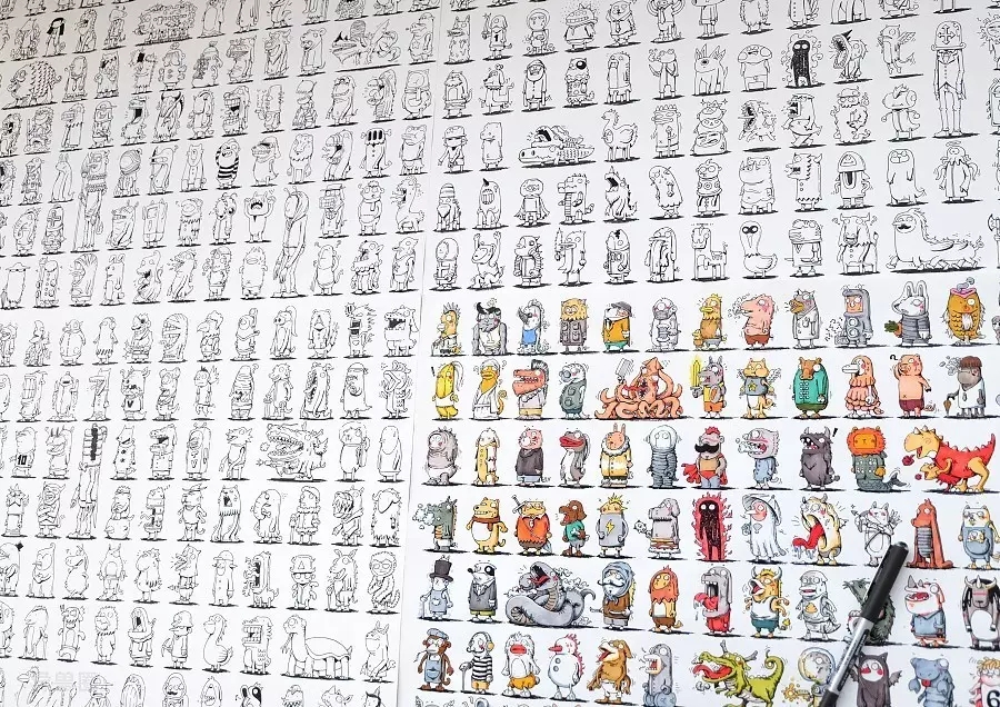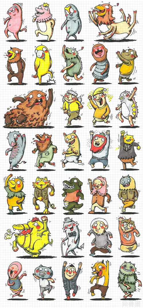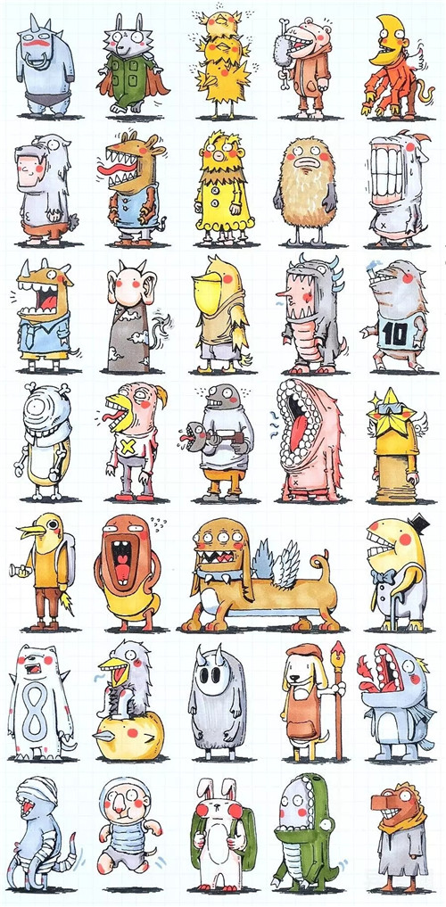 第一次看到他的作品就把我给震撼到了,炒鸡喜欢!他笔下的怪兽,鬼神,卡通小人都特别萌很有喜感。