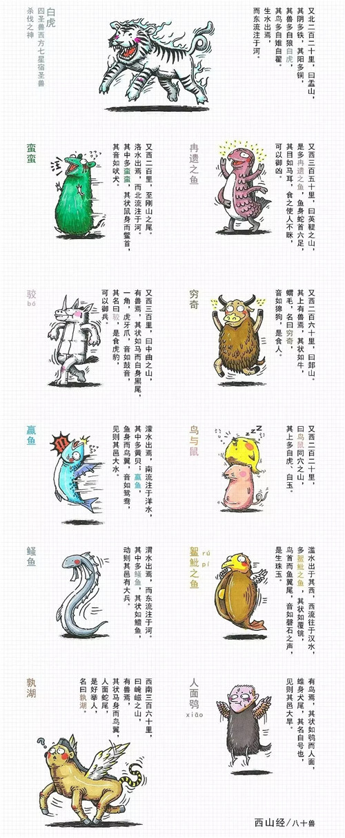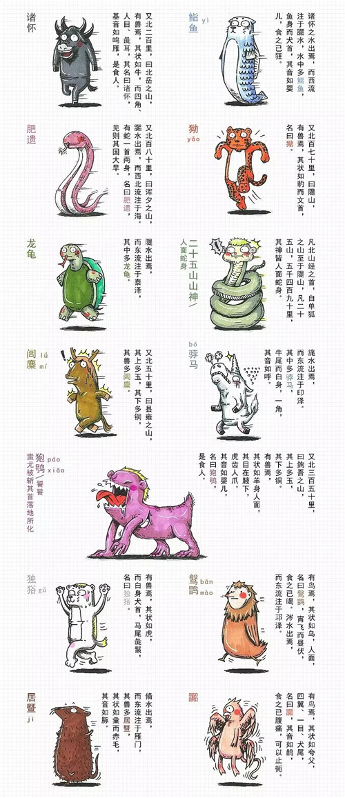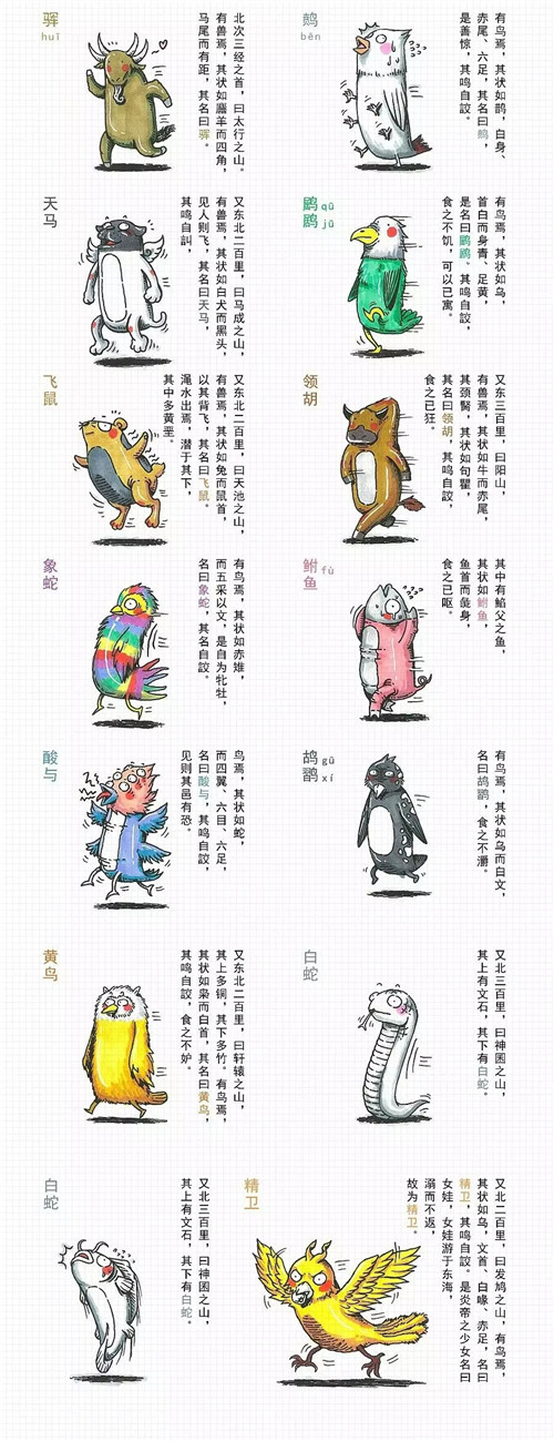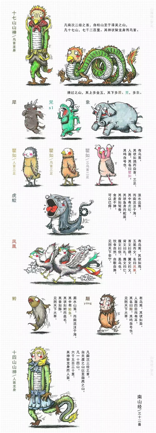 《山海经》是一本奇书,绘画过程中更有这种感受。但却不为现代人所知,希望通过重新制作,让它变得有趣起来。