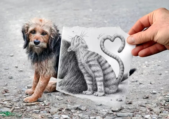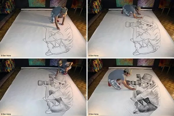 他的成名作品Pencil Vs Camera,一直是互联网上经常被疯传的作品,其创意与想像力非常突出,而且作品有趣,是将绘画与摄影结合的成功例子。