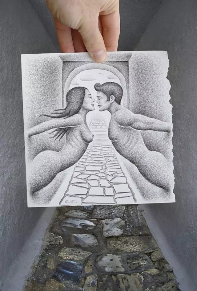 太赞了!这才是真正的创意,真正的艺术家,想象与现实,完美契合,画里画外,看似简单的照片涂鸦,Ben Heine 却融入了很多爱和热情,让人在艺术中身心愉悦。