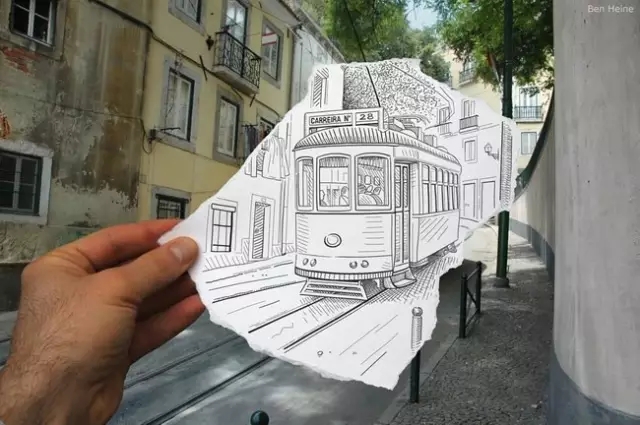 “Pencil VS Camera”系列作品将黑白单线条的漫画与多彩的真实世界相映成趣。作为一个出色的插画家及摄影师,Ben Heine的创意与想像力不可限量,通过这一张张小小的带有创意的速写,将idea和现实完美衔接,生活也充满了乐趣。写生不再是死板的对照临摹,也可以有想象空间。