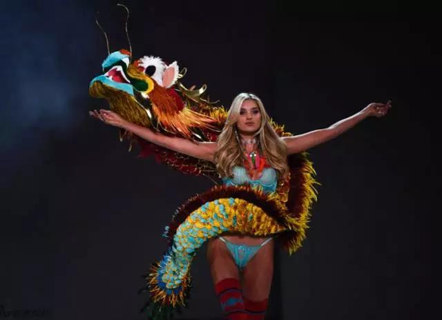 在开场秀The Road Ahead(前路奇缘)中,Elsa Hosk身披着飞龙出场,当然也有网友觉得这更像是金龙鱼广告。