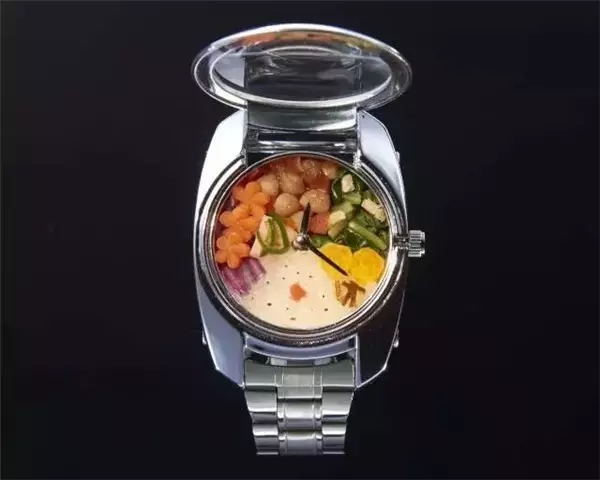 这款直径30mm的手表便当,是世界上最小的手表便当。虽然塞满食物但并不影响手表的正常运作,自带可伸缩迷你筷子,开盖即食。
