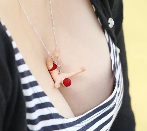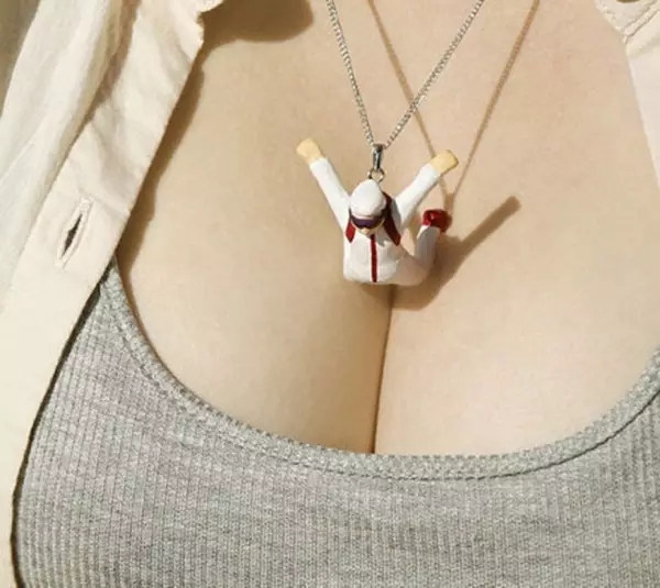 日本设计师福泽贵之设计的创意项链,主题就是项链挂着的小人一脸努力往乳沟里跳的样子。请问设计师们,你们有考虑过平胸妹子的感受吗?