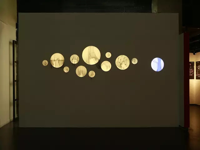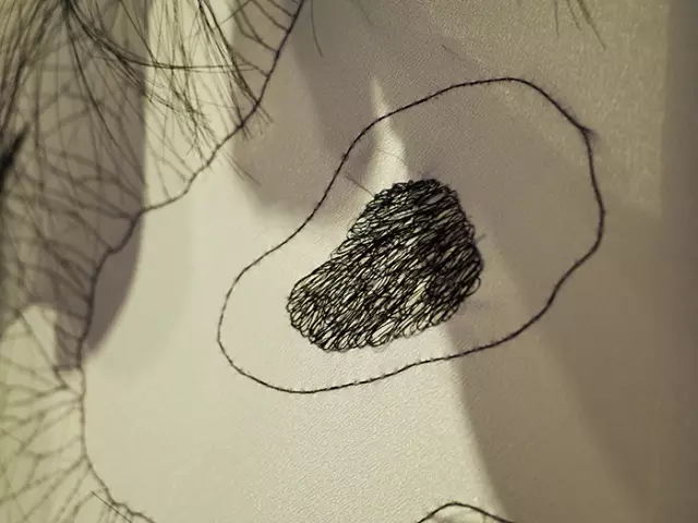 仔细看绣面上的图样,像是皮肤上的斑痕,还有一些是模仿细胞的形态。这些都是关于“生”的阐述。
