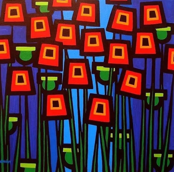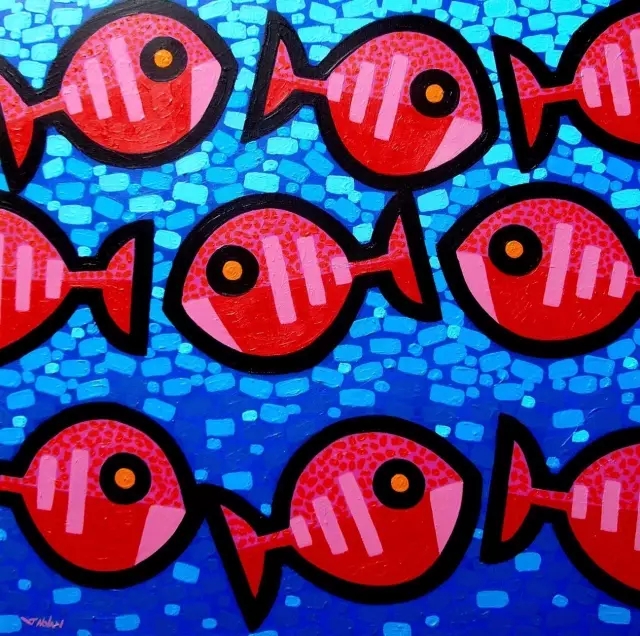 约翰·诺兰的风格结合了大胆的轮廓和明亮的奇异的色彩。他解释各种图案,传递一个积极的乐观的感觉,这些主题分别是:鱼、花、人、鸟、静物、抽象、拼贴、风景。