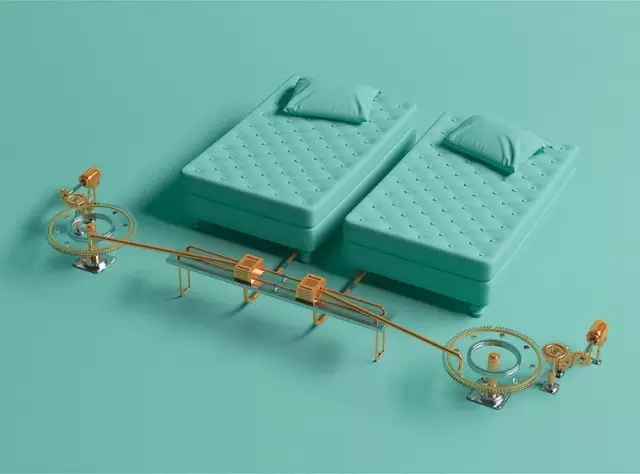 视频将起床、吃饭、上班、谈恋爱、购物、扔东西、失恋、接受、睡觉等日常行为采用机械化的程序表现出来。
