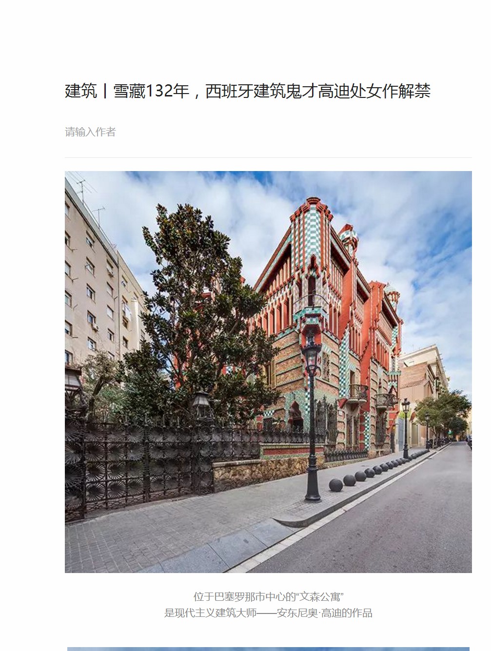 雪藏132年,西班牙建筑鬼才高迪处女作解禁