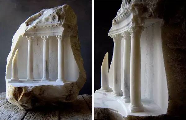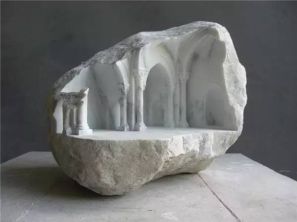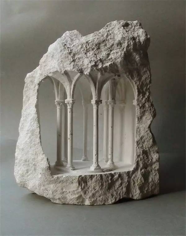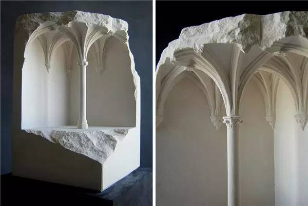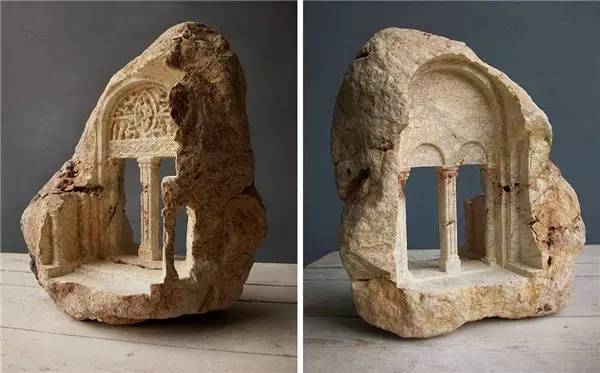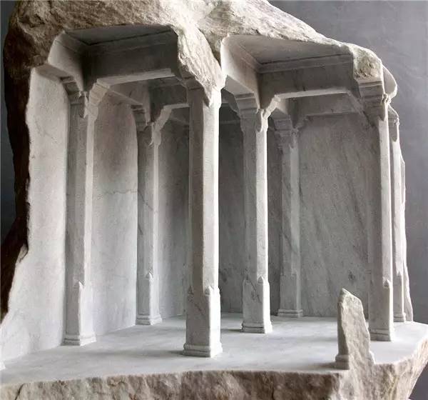 这些精细的作品并不是古建筑的缩略图,而是艺术家Matthew Simmonds以大理石为原料,雕刻出的一系列中世纪建筑的微型雕塑。