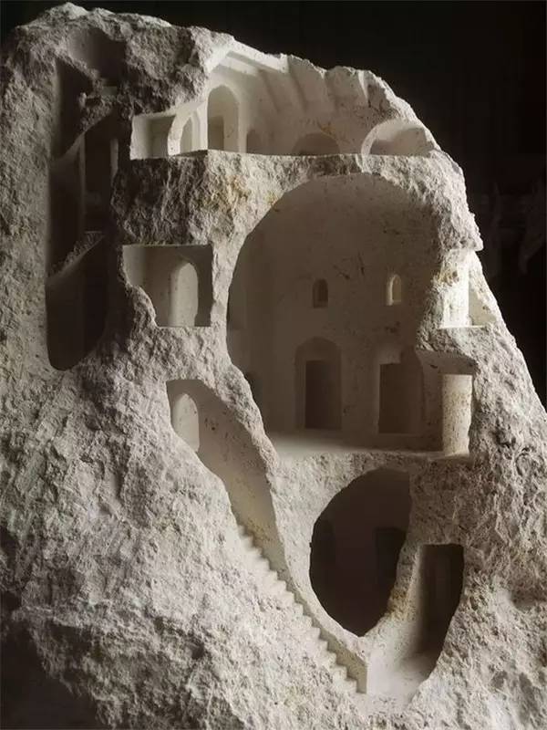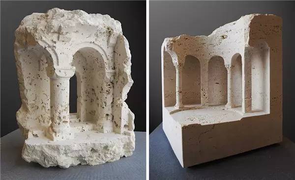 精雕细琢出的建筑空间展现了一幅幅复杂的内部世界图景,变幻的视角和光线也让雕塑呈现出不同的面貌。