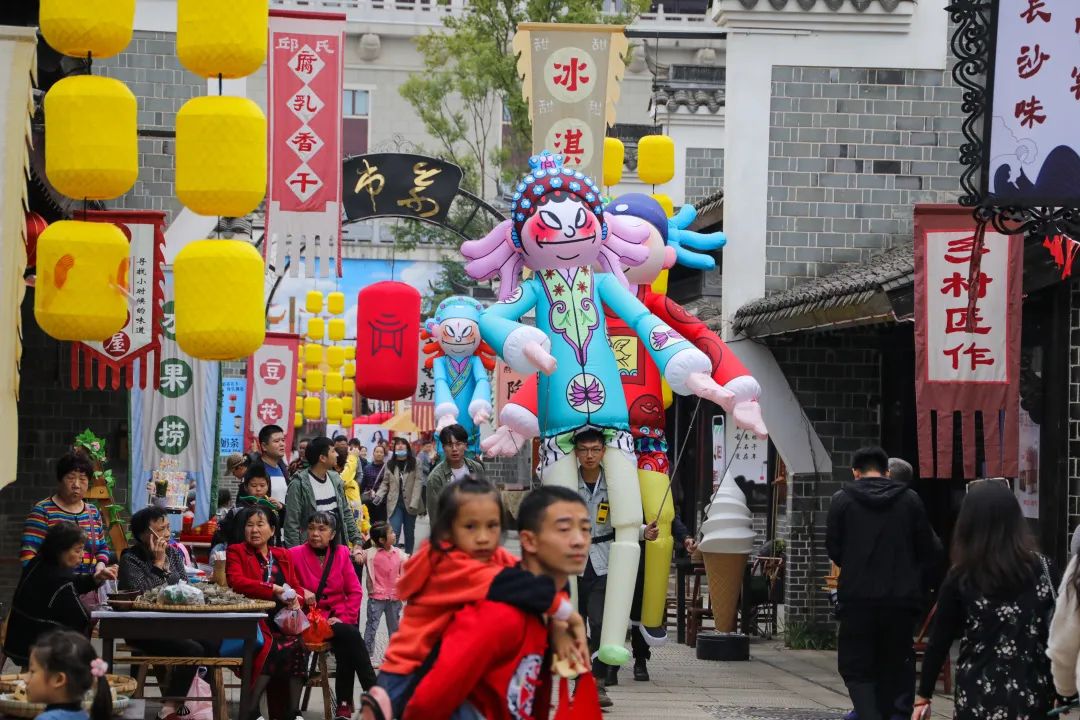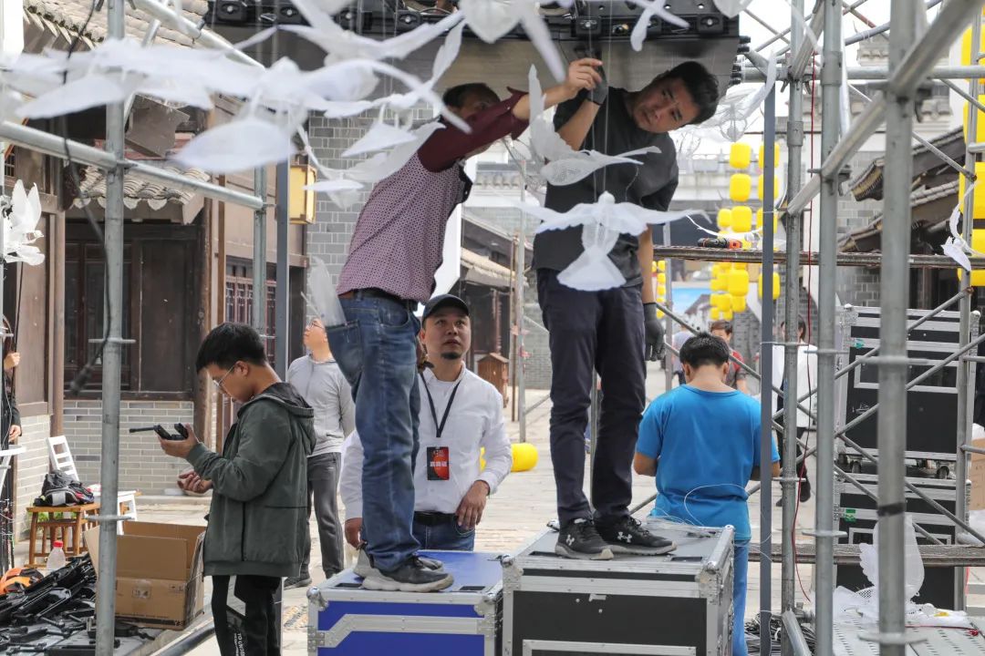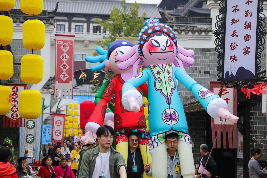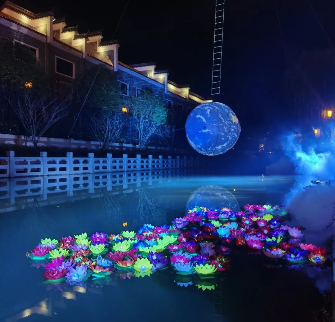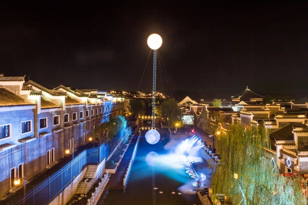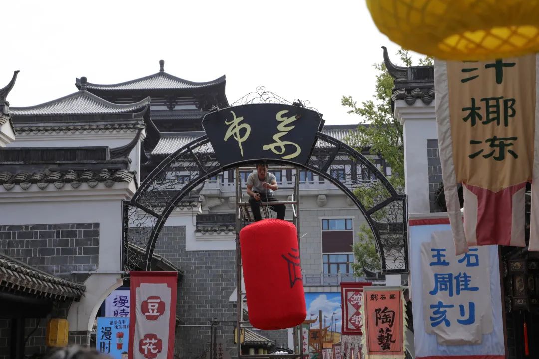 徐丹的《凝固的风景》,以荒诞雕塑的星球为外壳包裹戏剧模型,游客可在不同孔洞中看到时间流动下的“凝固”风景;倪放的《草市·戏宴》,在草市摆上长桌戏宴,展示戏剧的民间性与世俗性。