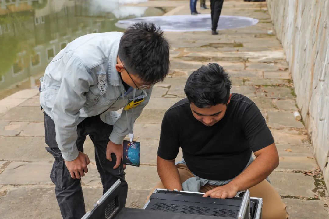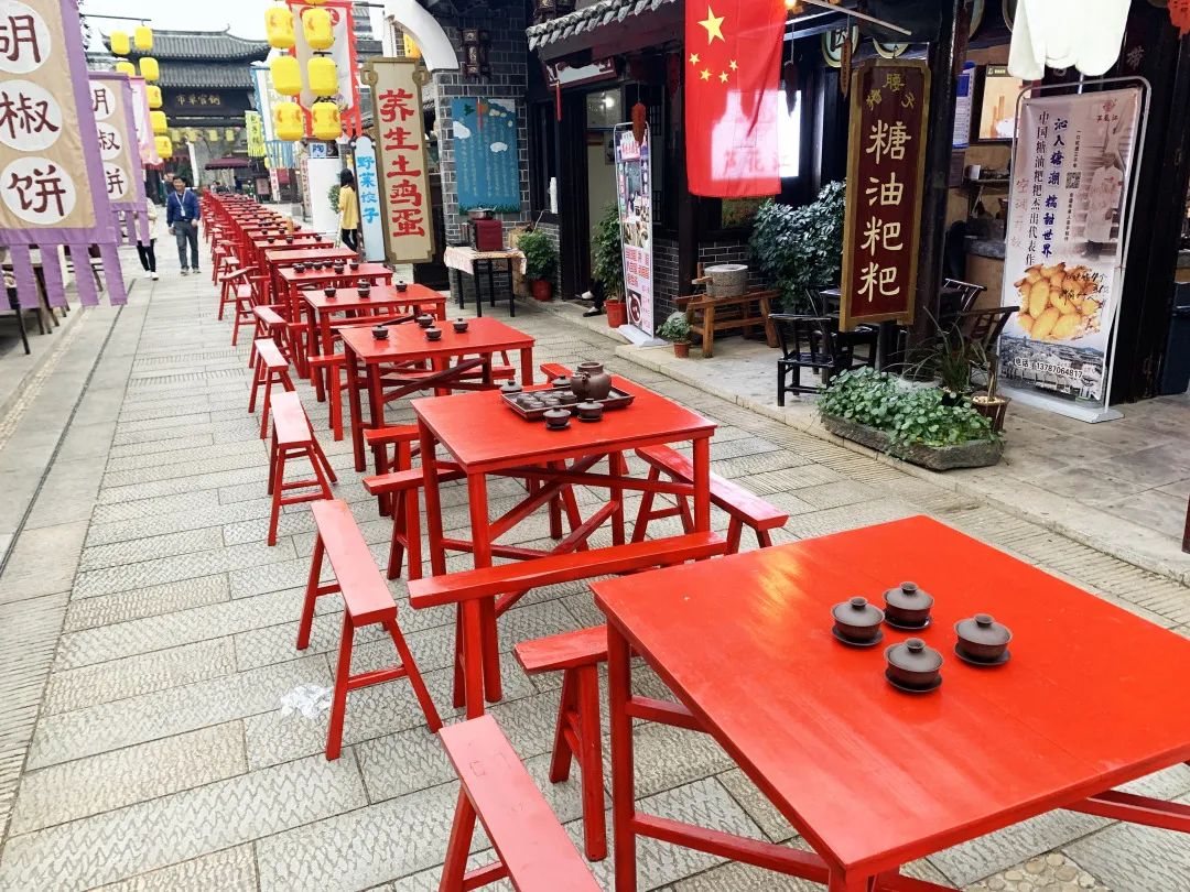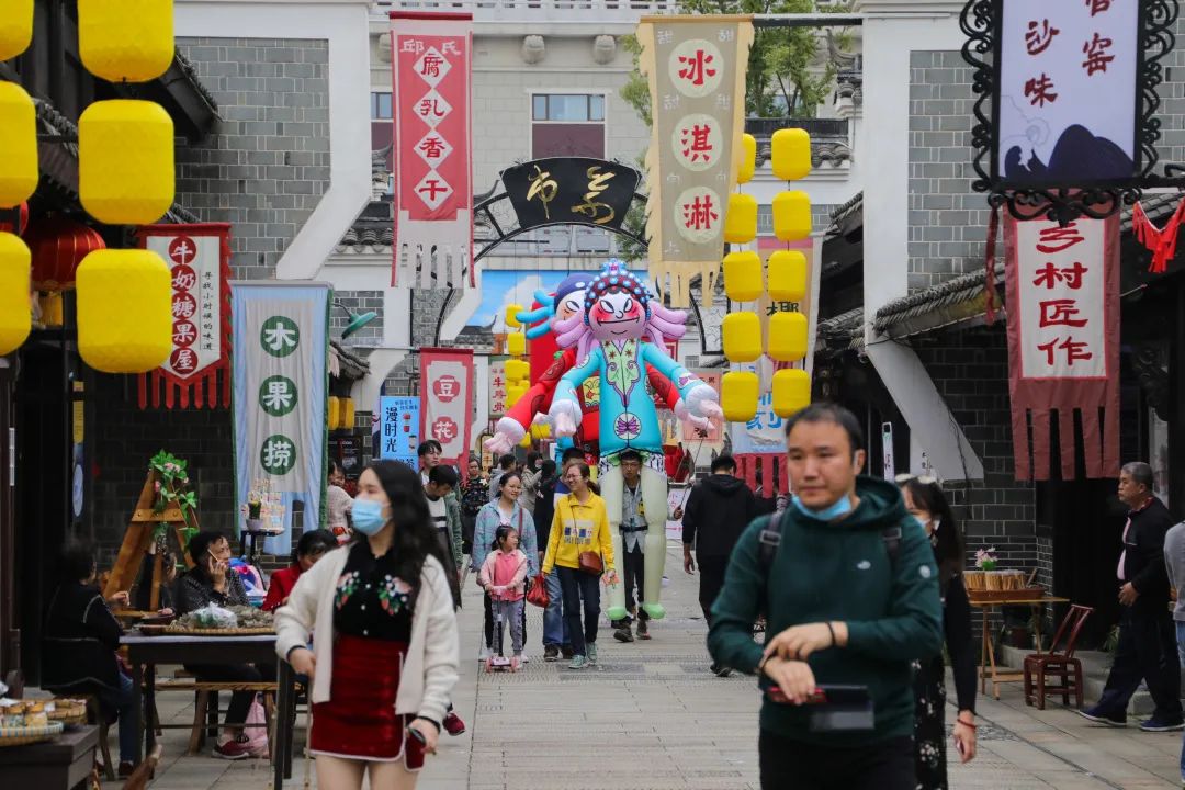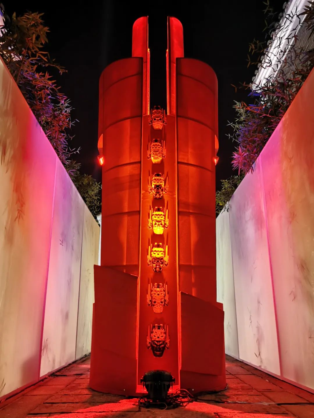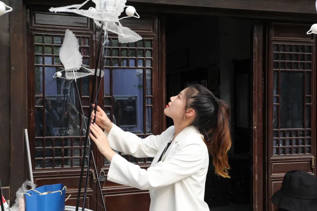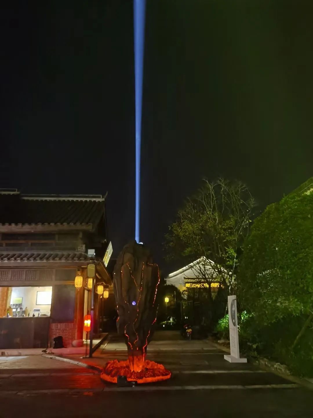 徐丹的《凝固的风景》,以荒诞雕塑的星球为外壳包裹戏剧模型,游客可在不同孔洞中看到时间流动下的“凝固”风景;倪放的《草市·戏宴》,在草市摆上长桌戏宴,展示戏剧的民间性与世俗性。