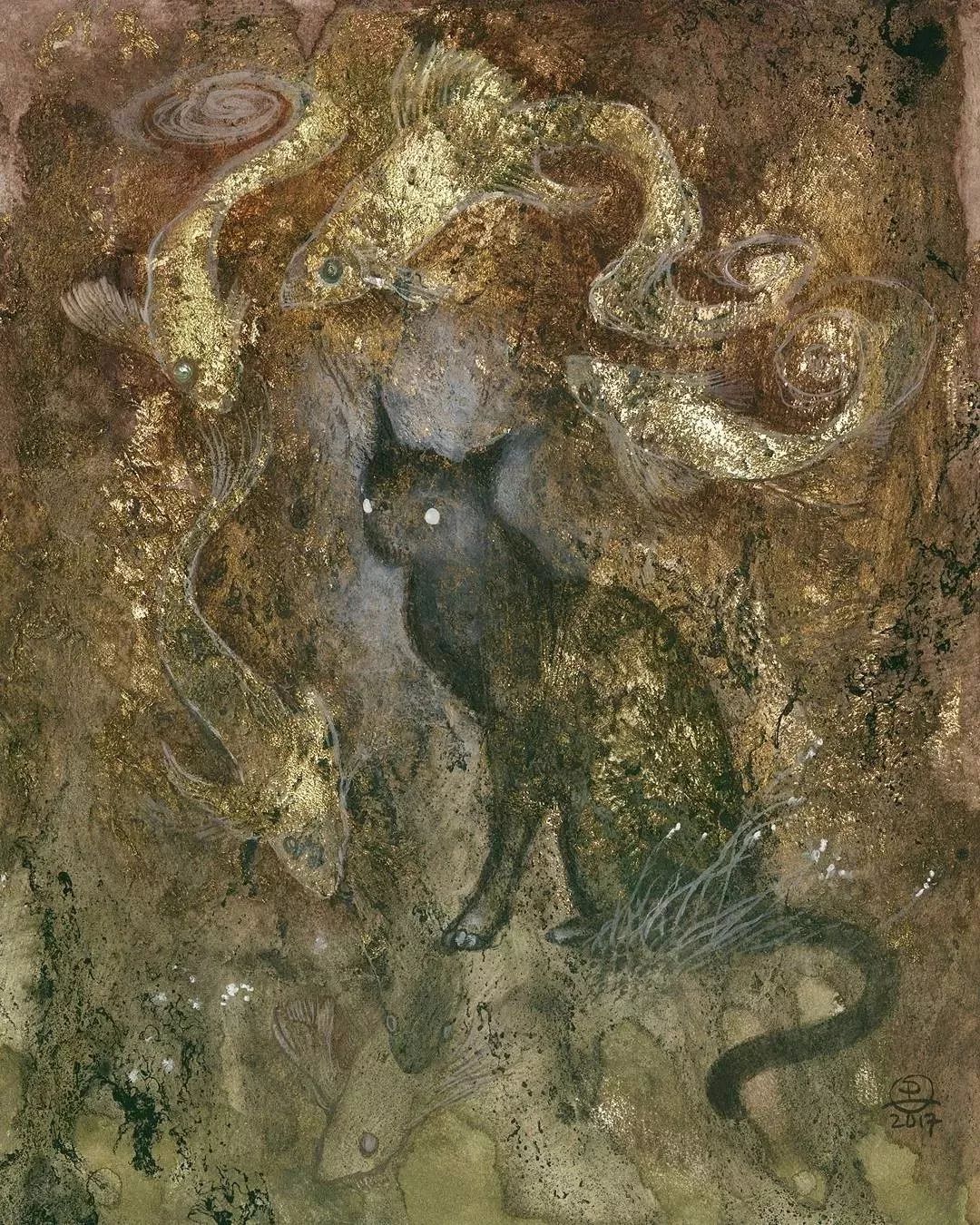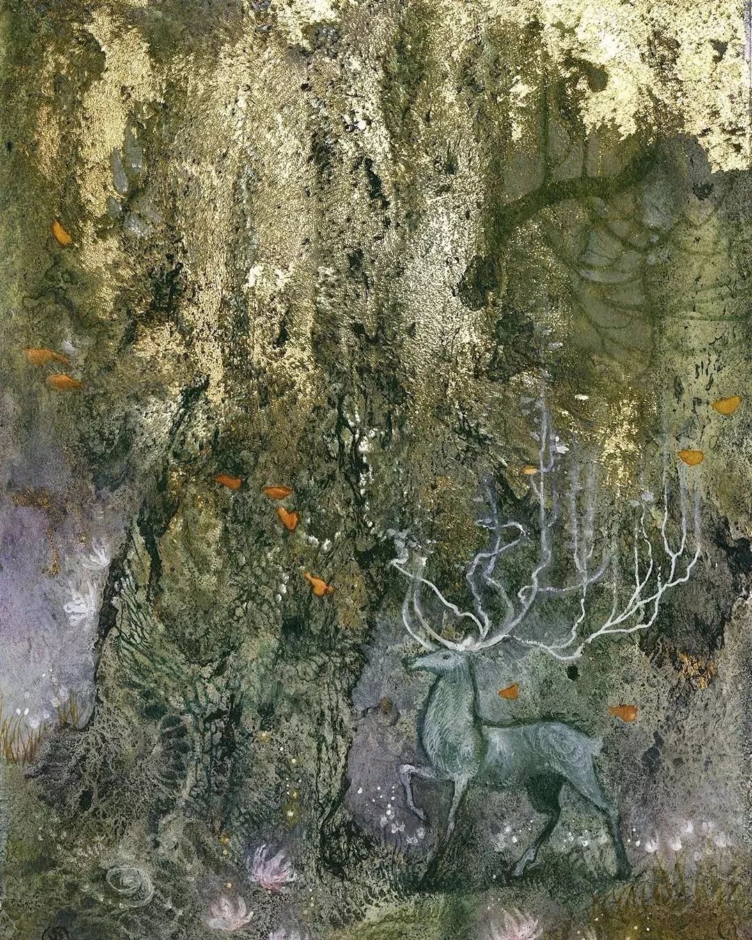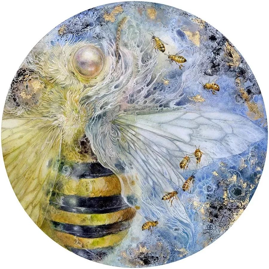 这其实是用金箔和水彩融合而成的,