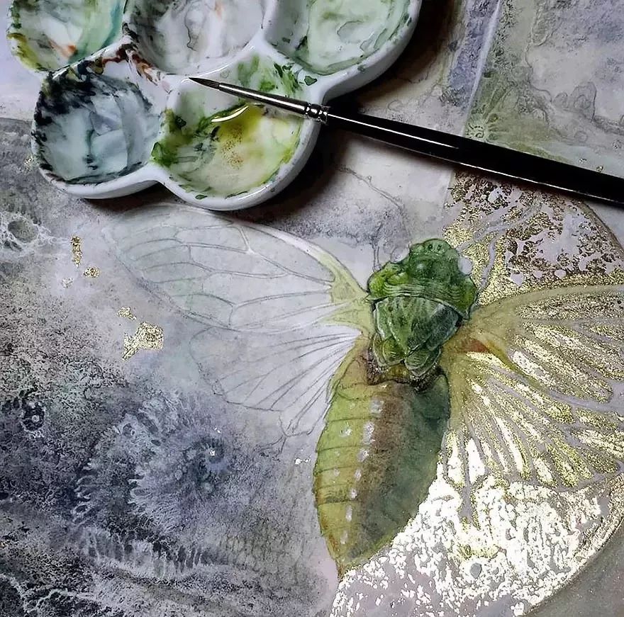 工具:画笔、水彩颜料、金箔、胶水凝胶。