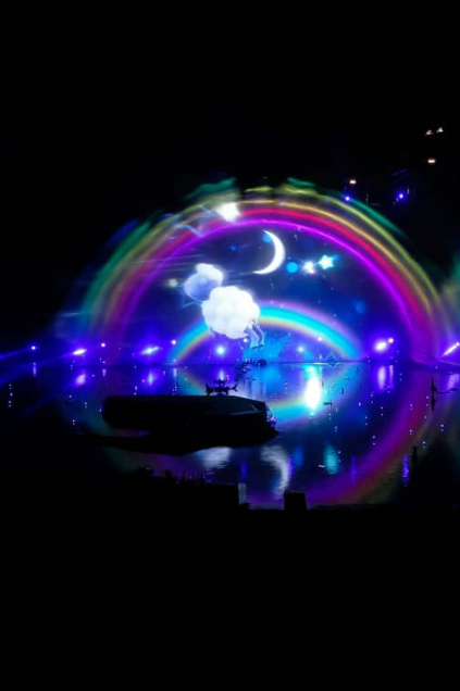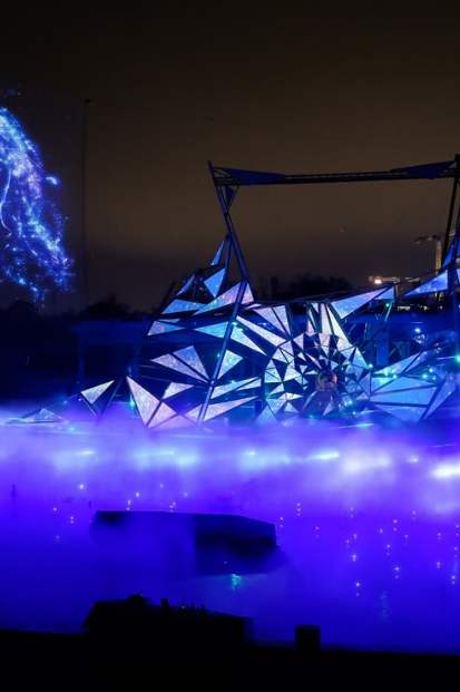 在7000平方米的水上舞台和1700平方米的影像覆盖水面中成就了一场全新的感官盛宴,充满节奏感的故事画面让观众叹为观止。