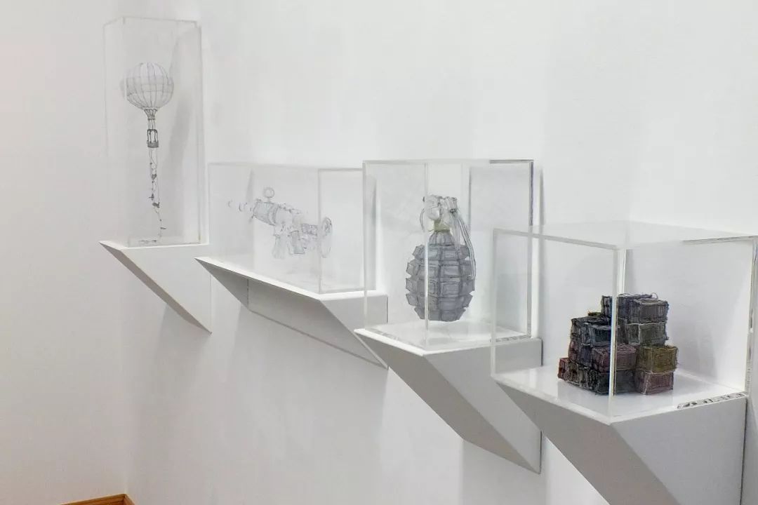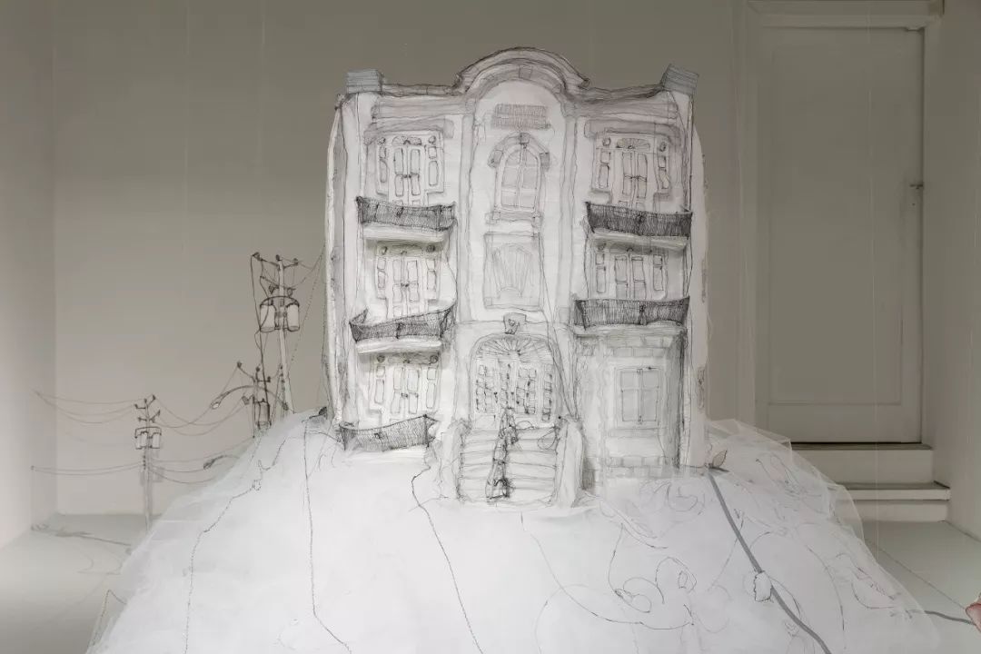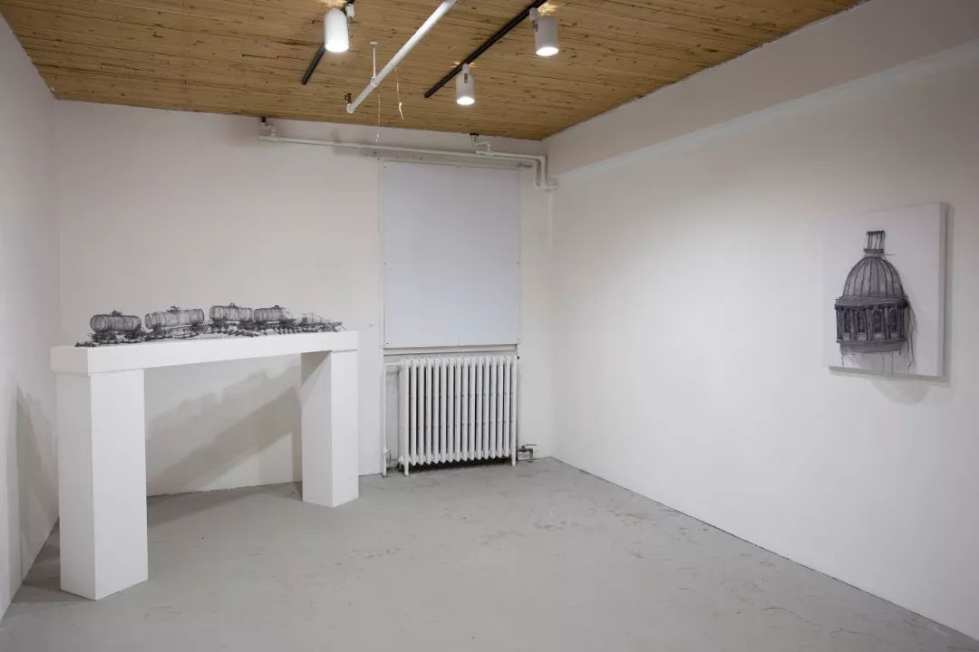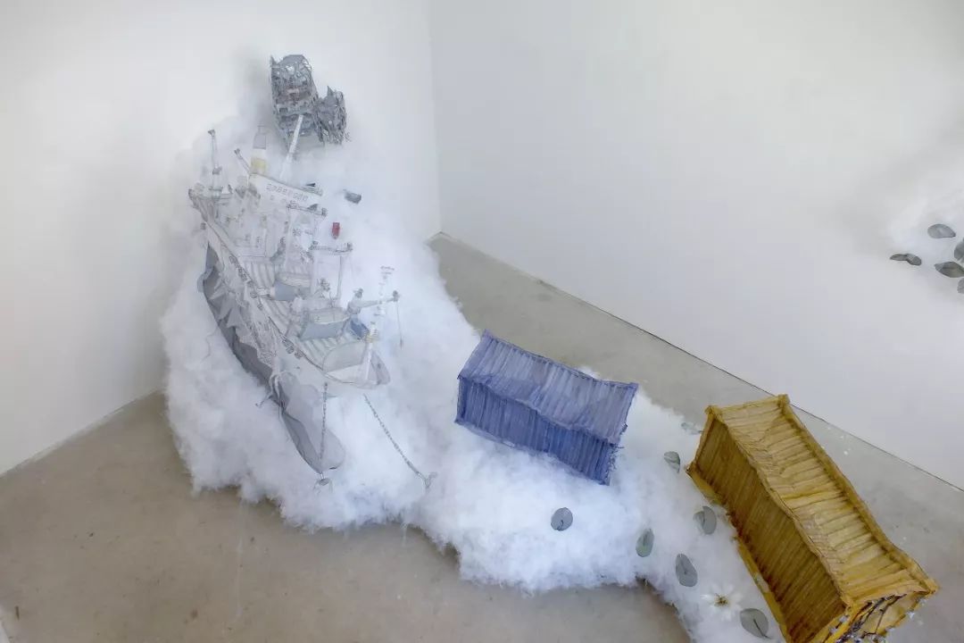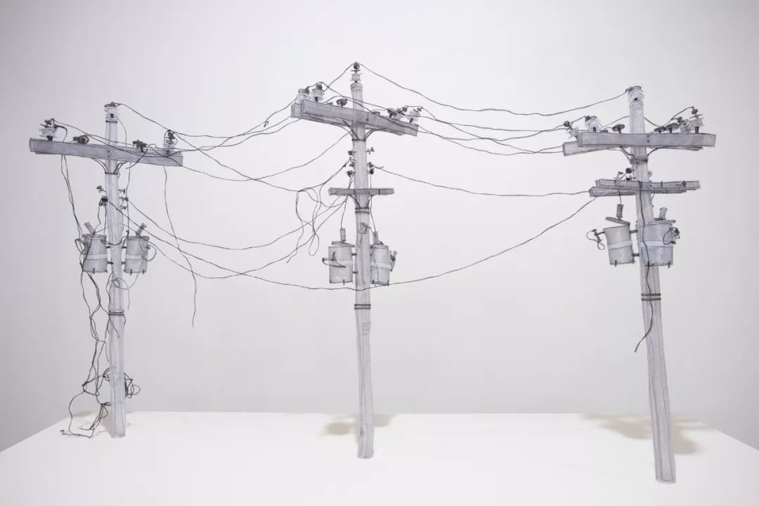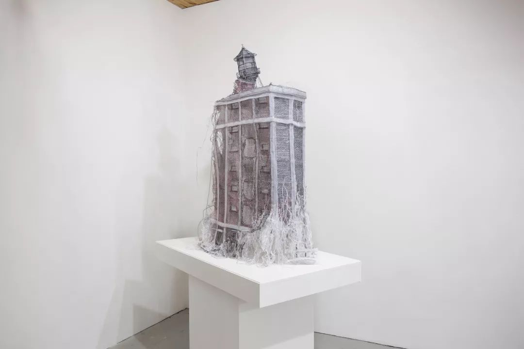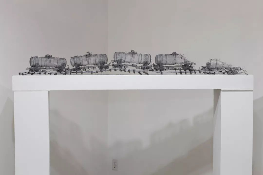 这件雕塑目前在Art Mur Montreal展出,此次展览是艺术家的个展。展览中还展出了两件微型雕塑,它们描绘了一系列损坏的模型火车和一段断了的电话线。