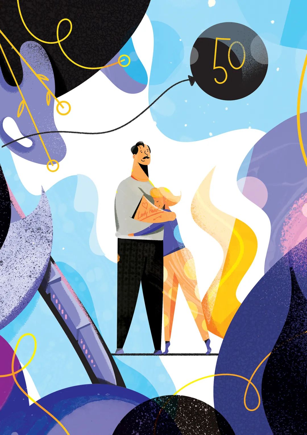 除了日常的工作插画以外,她还经常来画一些生活上的作品,比如妈妈五十周岁生日的时候,她画了一幅插画做纪念。