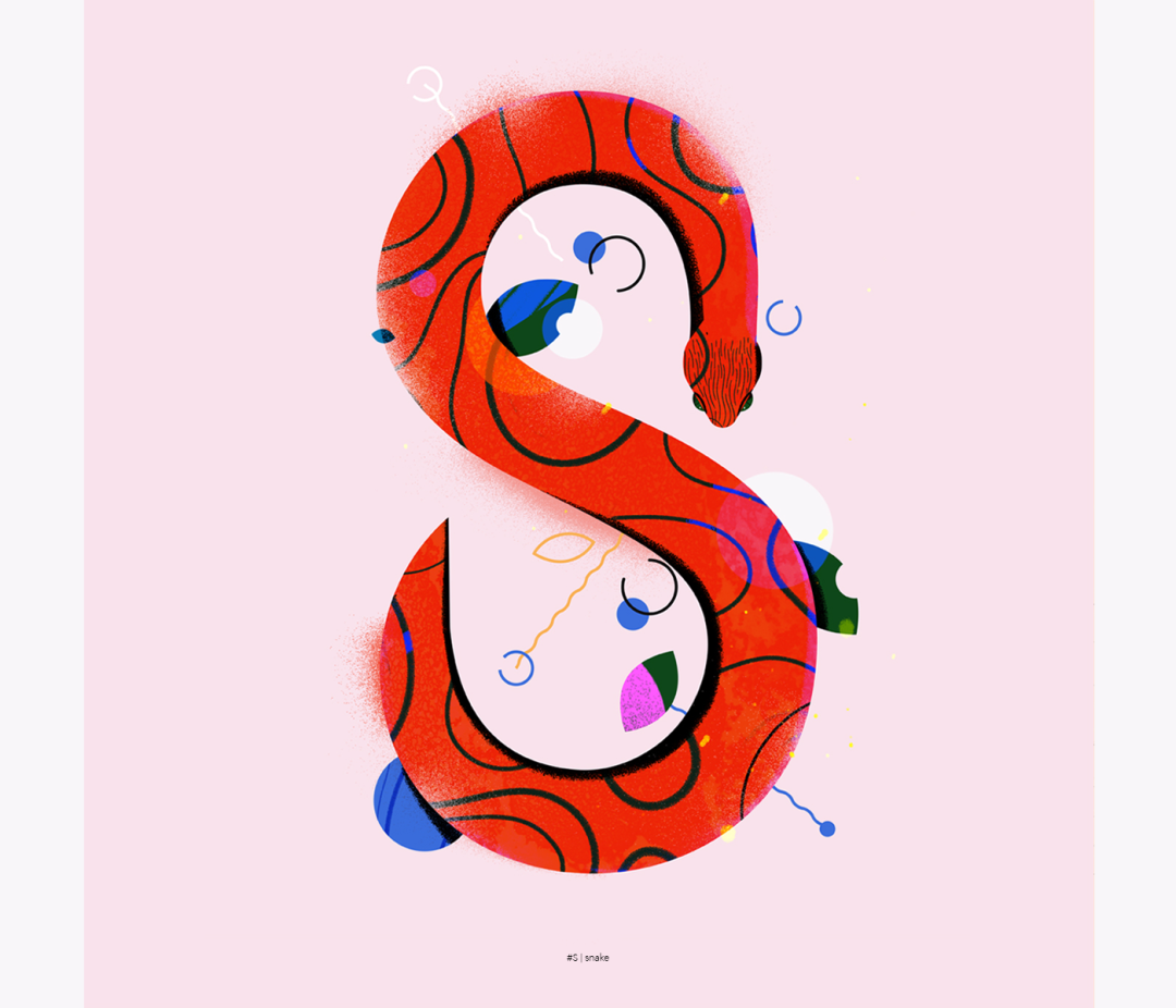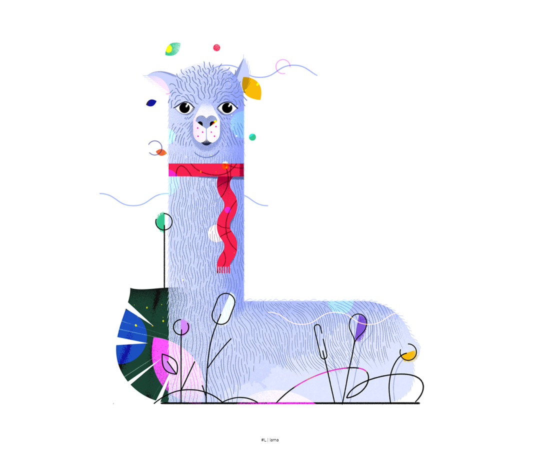 作为设计师都喜欢参加36days的活动,她选取了以动物为主题的矢量插画,和上面看到的作品一样,也是同样的色彩艳丽,造型简洁。用动物的形态组合摆出字母的造型,整套作品非常值得借鉴学习。