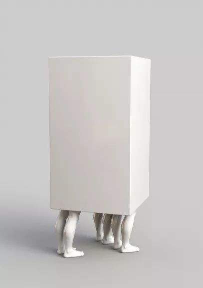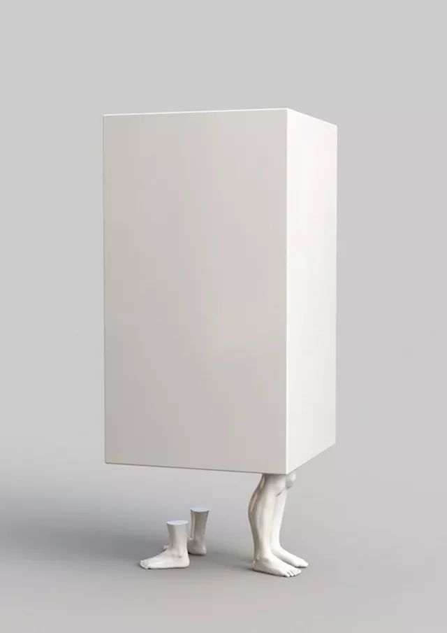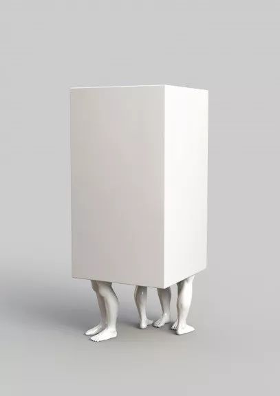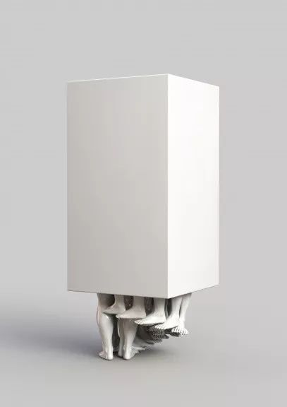 不同的脚群从一个像棱镜一样的小隔间里伸出来,这幅作品唤起了一种不健康关系令人窒息的亲密感。
