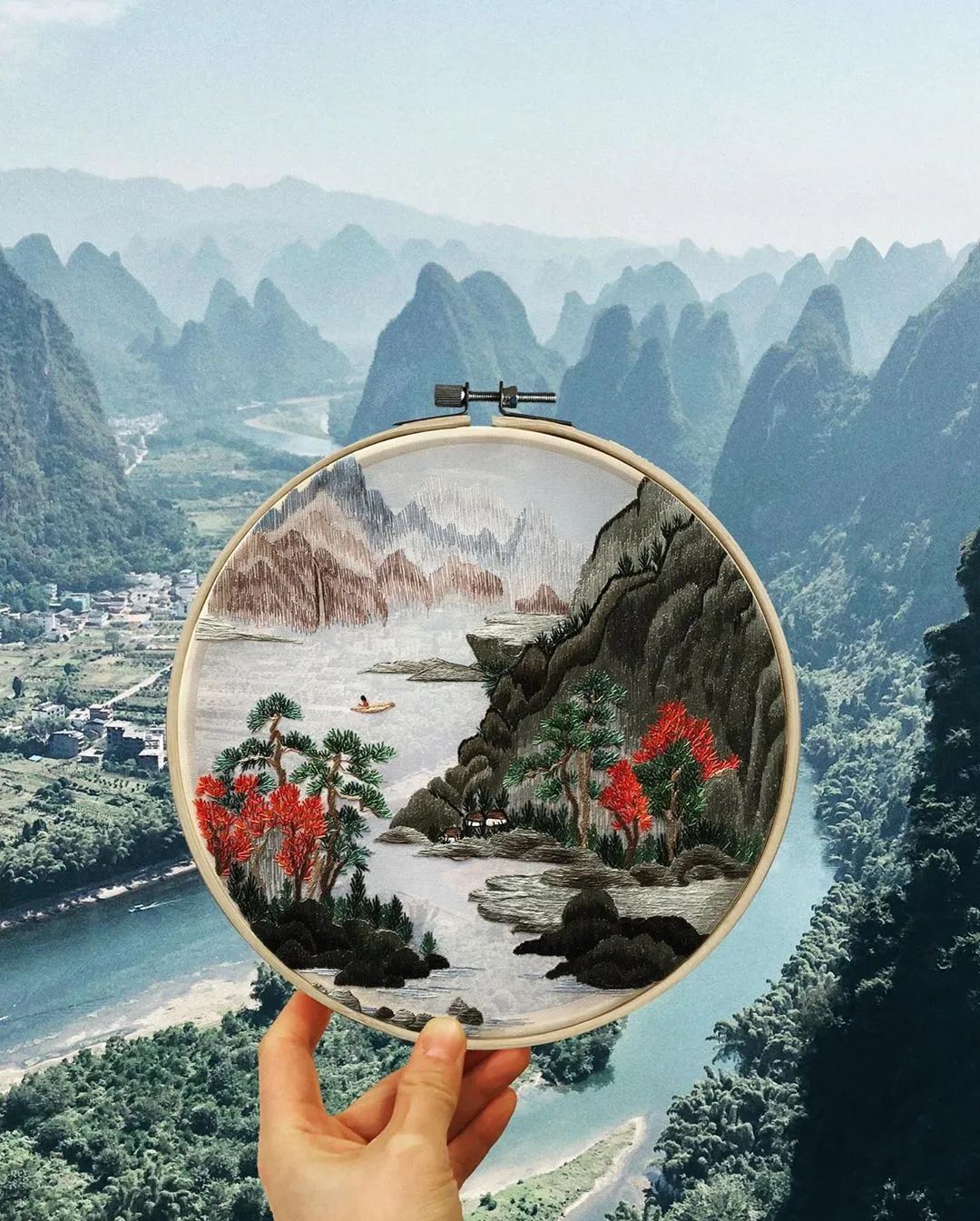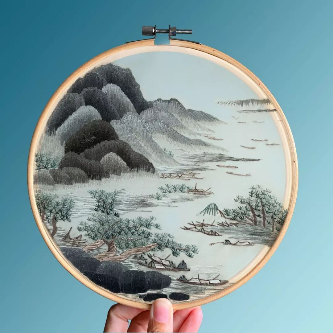 用一针一线,绣出故乡的山水画廊,无论走到哪里,故乡都可以与我们同在。