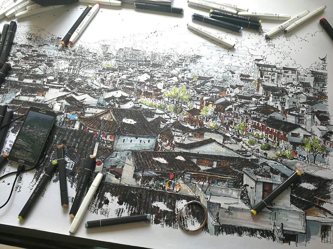谭泽鸿接触到了钢笔手绘,就深深被吸引了