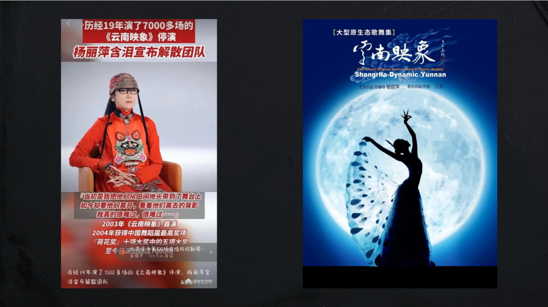 在抖音发布的视频中,著名舞蹈家杨丽萍数度哽咽:“两年多,我们一直在坚守着,不想放弃。我知道,很多人比我们更艰难,他们失去的更多,甚至有些人失去了生命,这次的疫情真的是太残酷了,太残酷了,没有了舞台,我们真的没有办法继续生存下去了。所以,我们又一次解散了团队。”