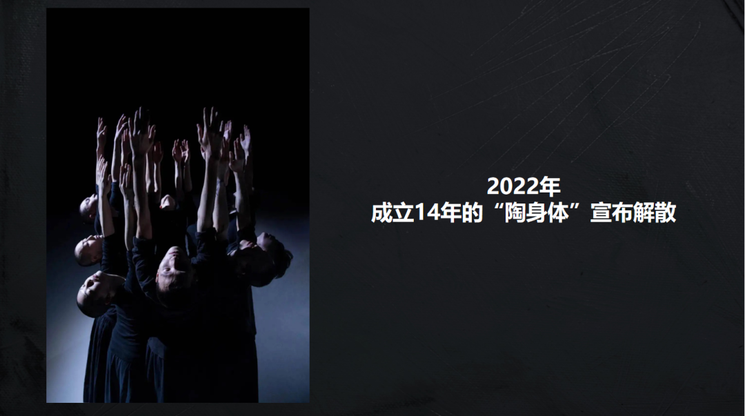 另一则消息是从资深媒体人洪晃的视频号里看到的:“陶身体一直是我最爱的当代舞团,理由很简单,他们跳的是中国的现代舞,他们展现的是中国人身体的美和力量,他们创造了一套中国的舞蹈语言。陶身体剧场要解散了,可以说是我近几年来听到的最沮丧的消息。”最近的一些报导北京现代舞团由于疫情的影响也同样出现了财务经营困境。